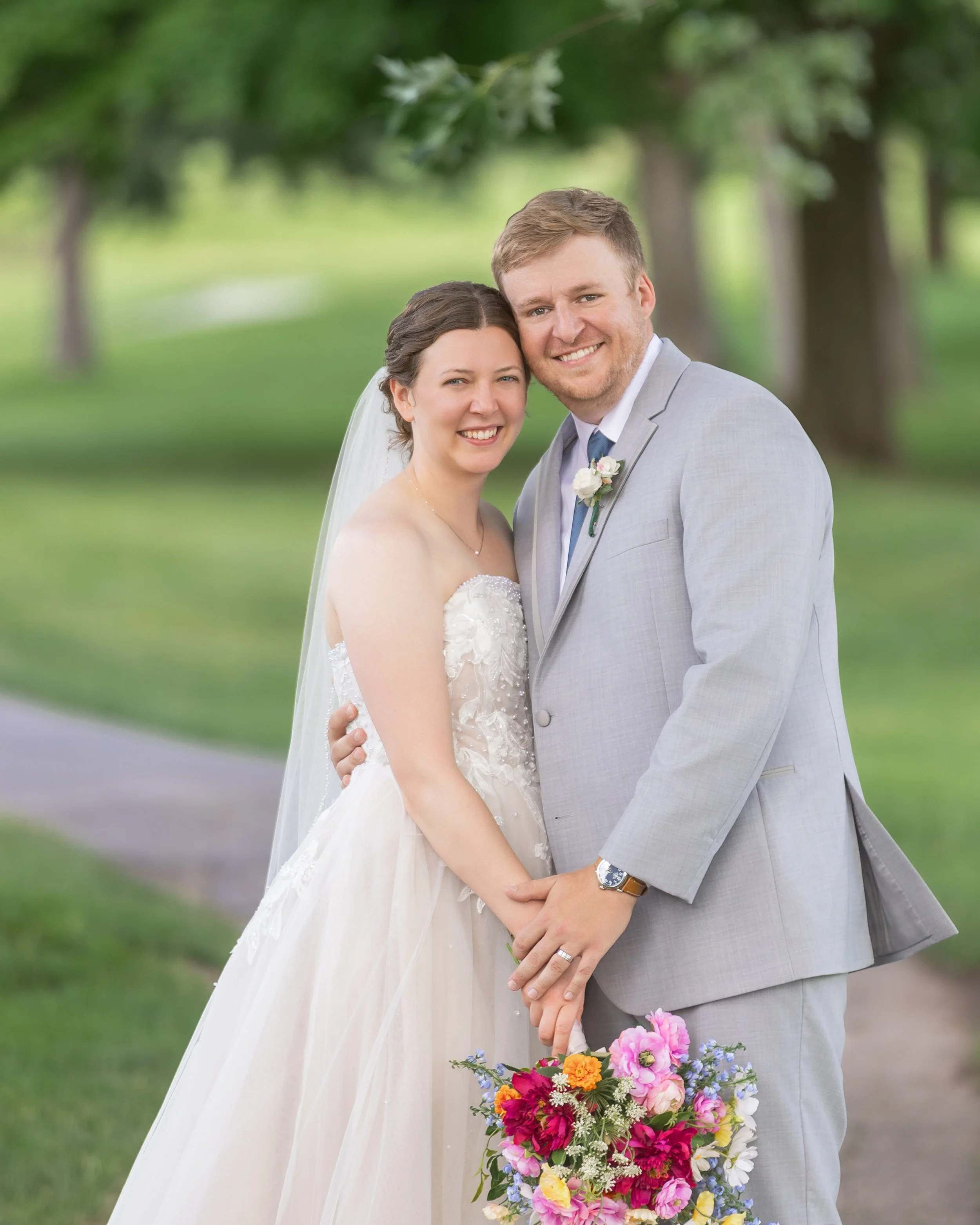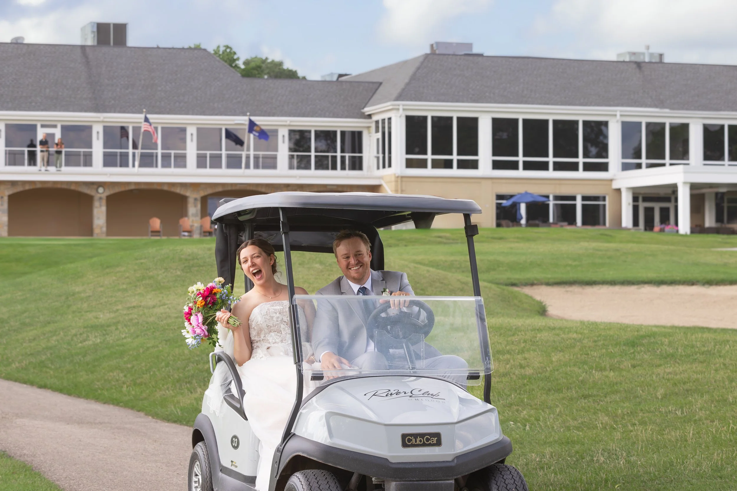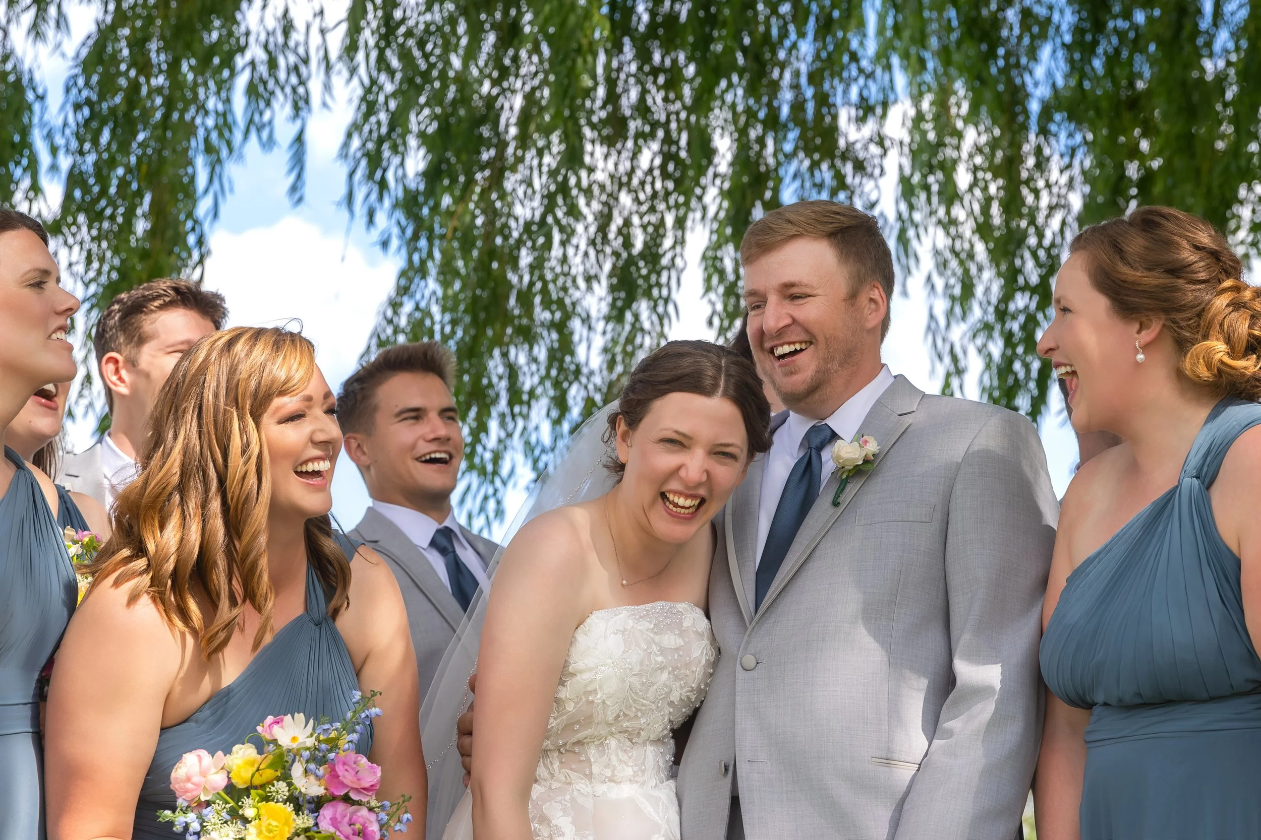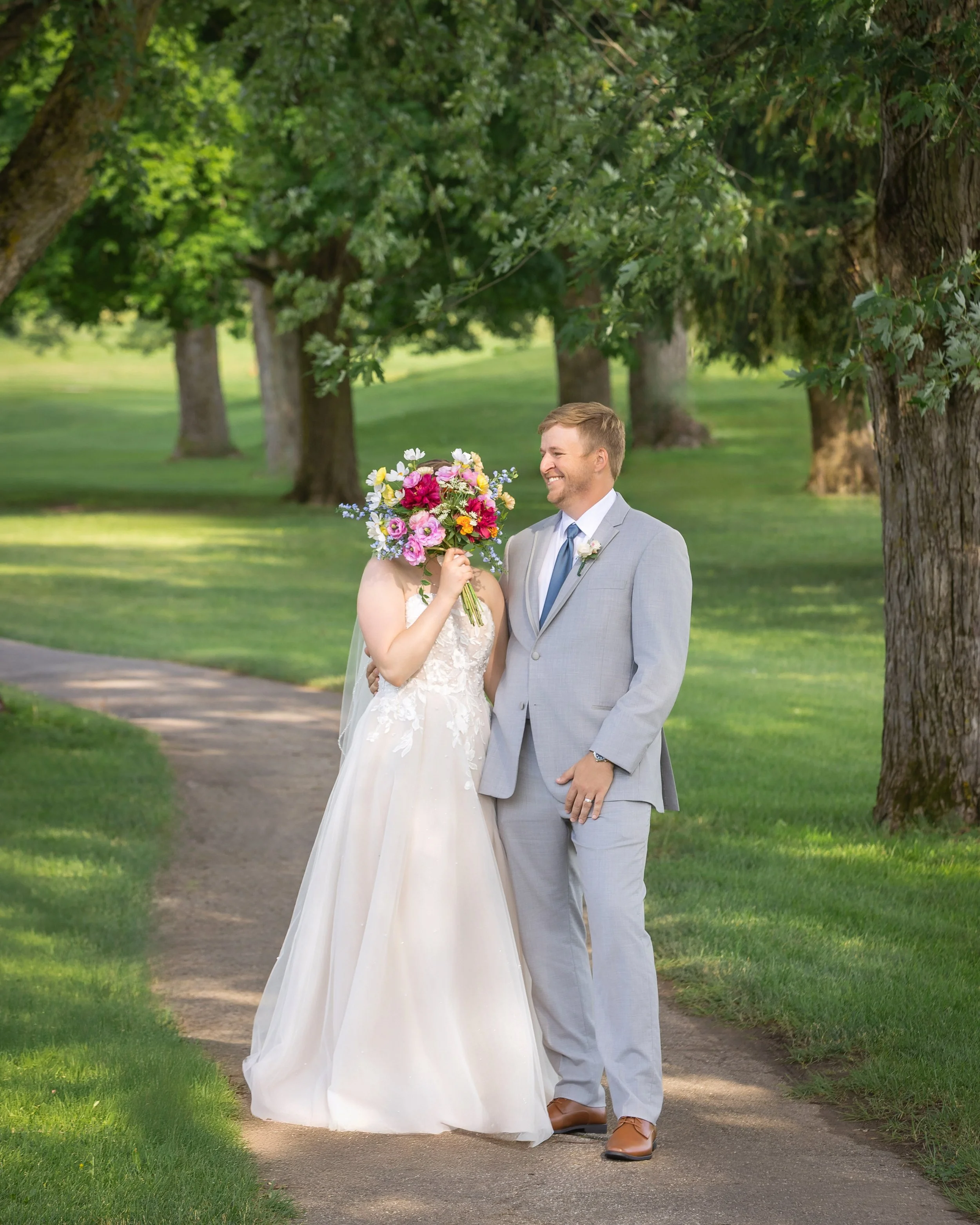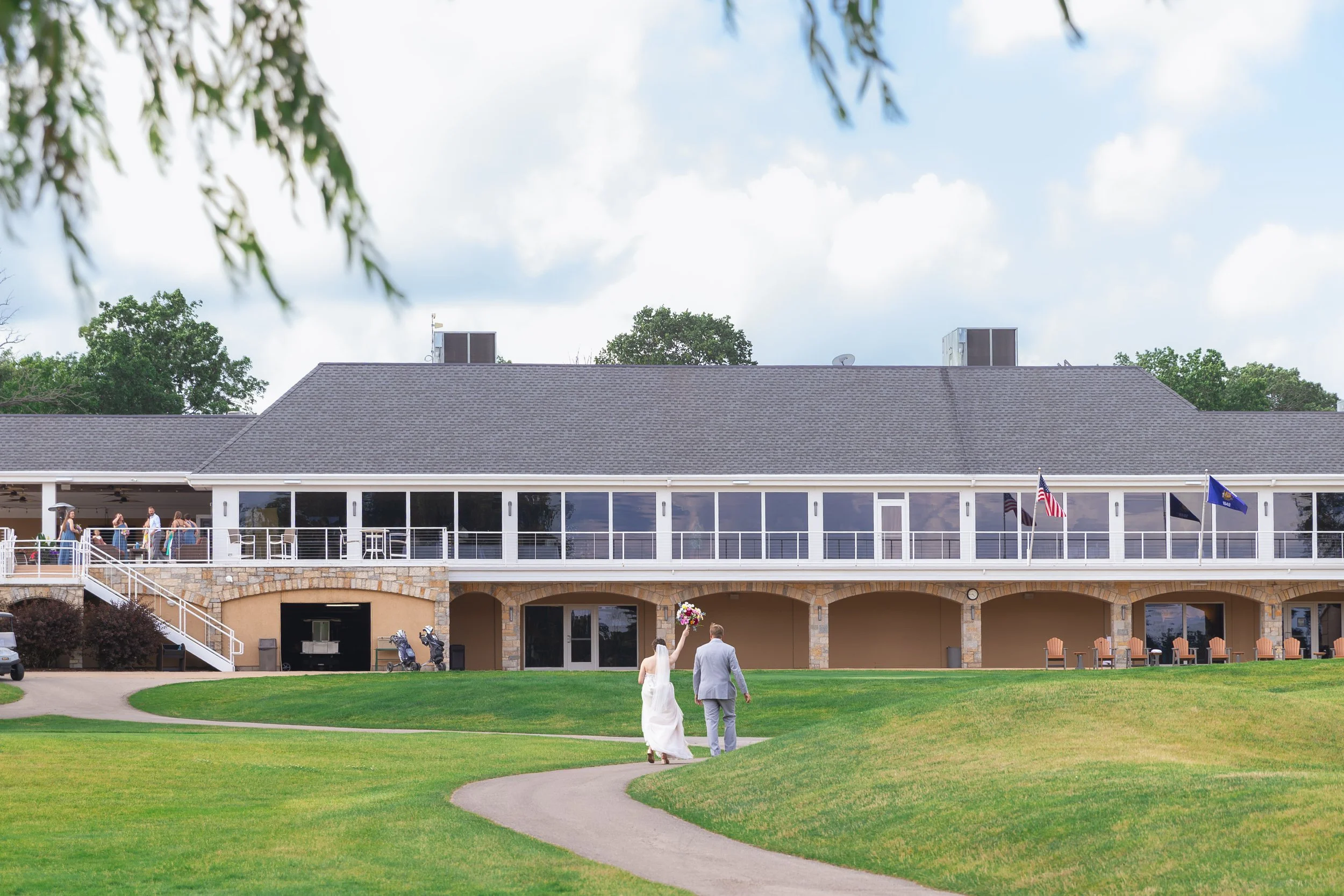 After family and wedding party portraits, everyone headed north to the River Club of Mequon. The golf course setting opened everything up—wide open afternoon light and the most beautiful willow tree right on the course. We had so much fun with portraits out there.