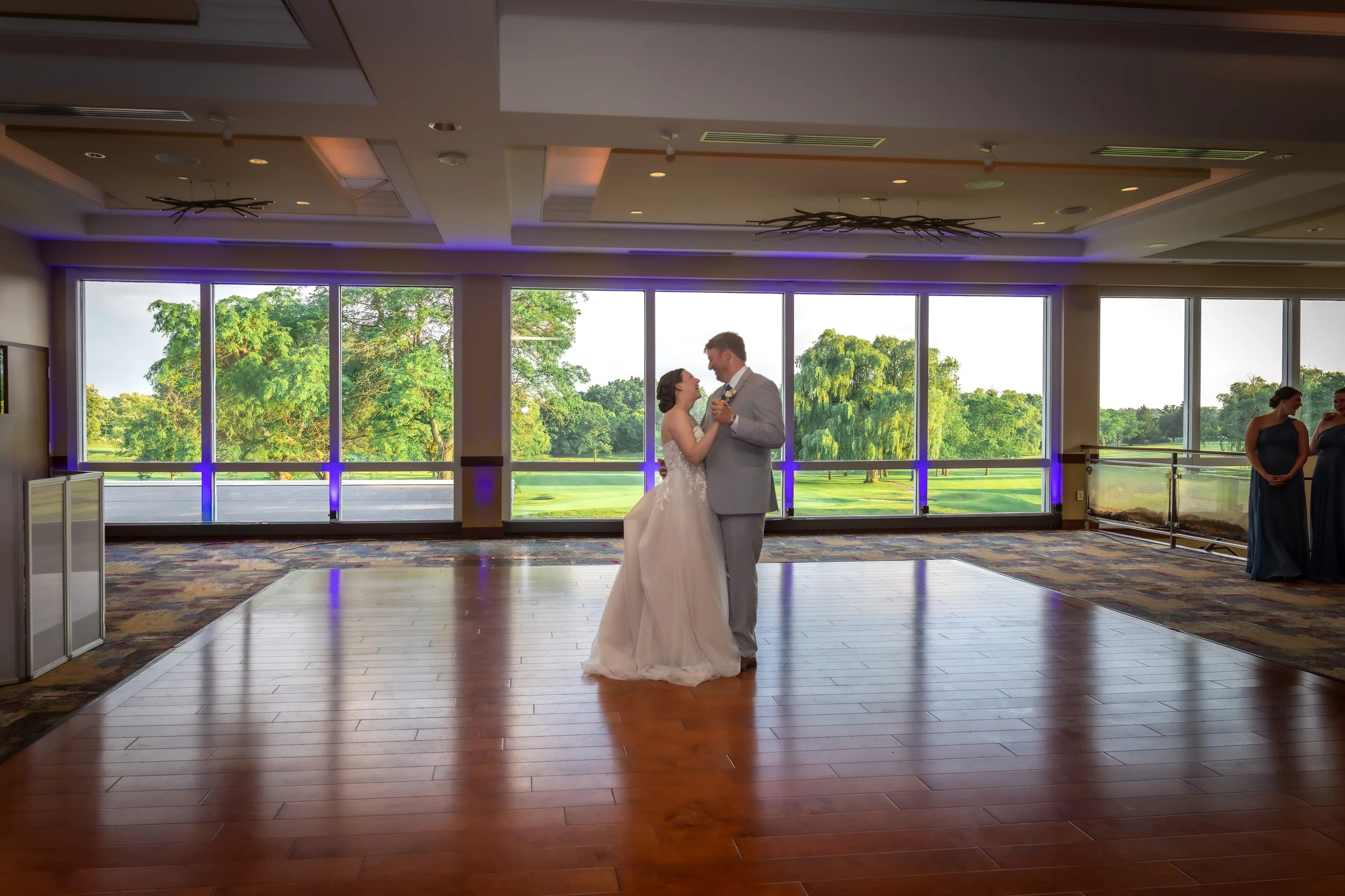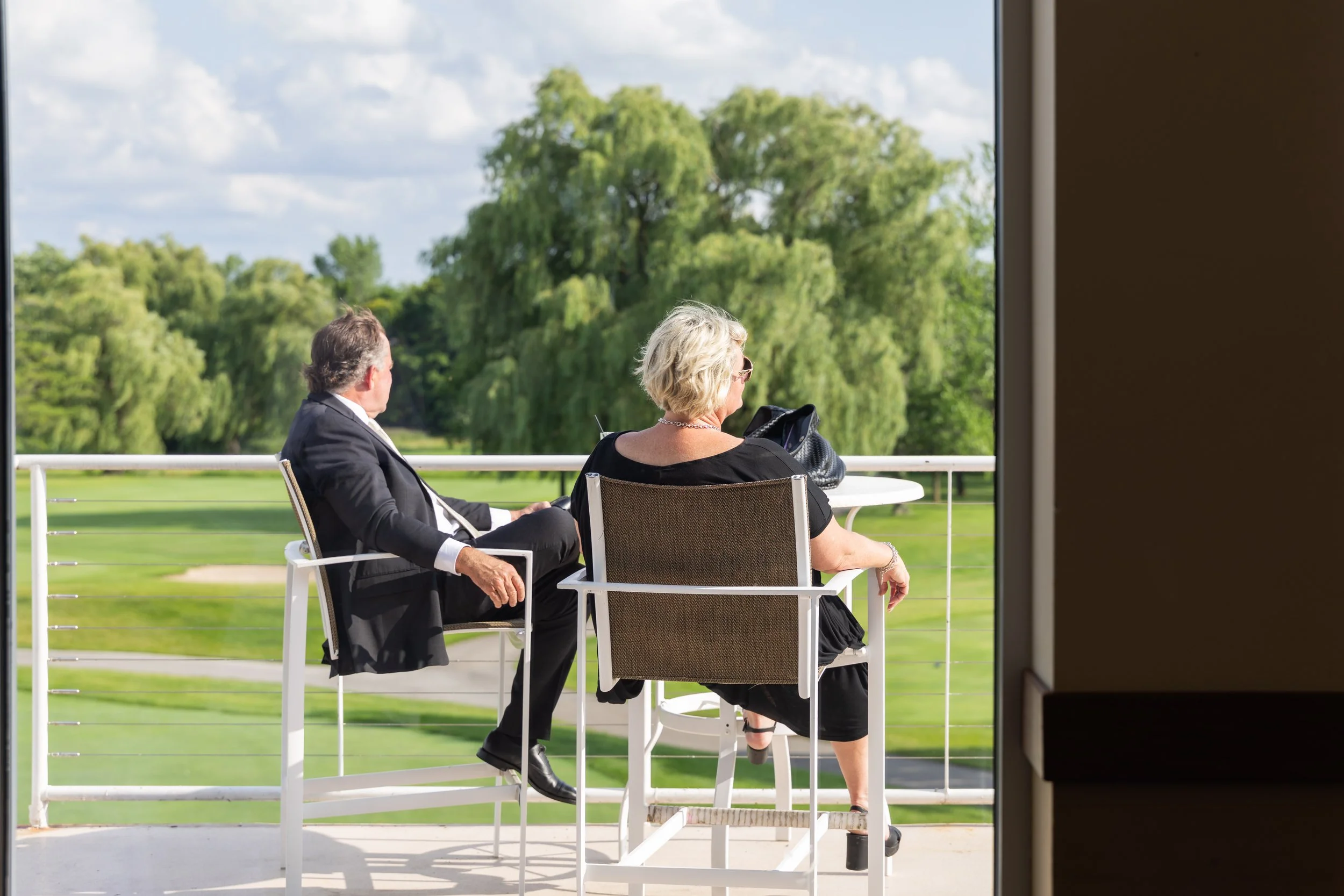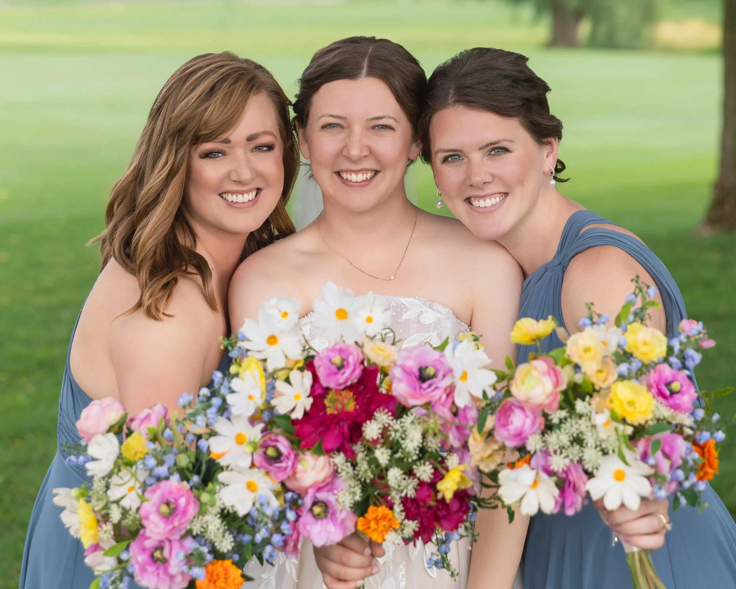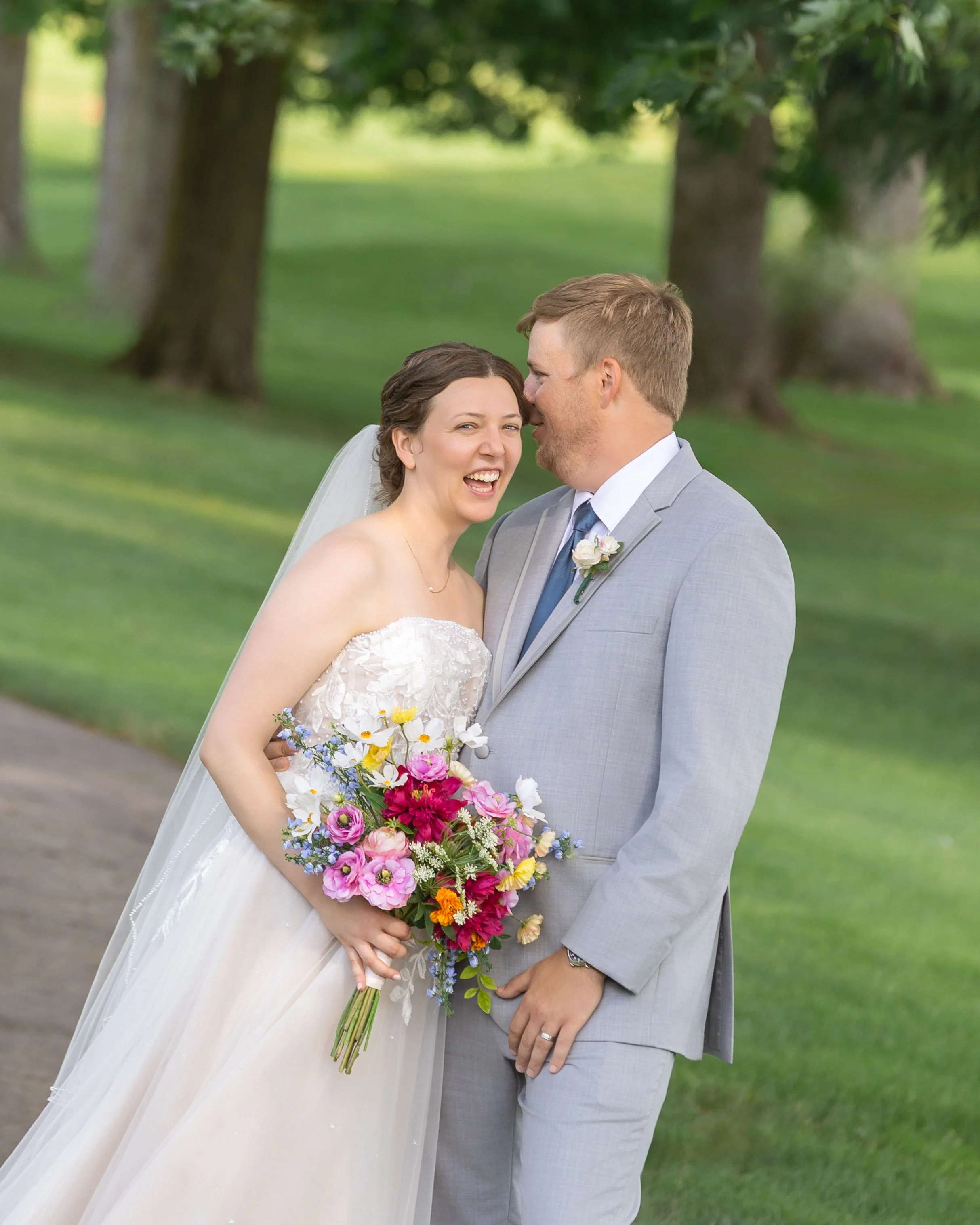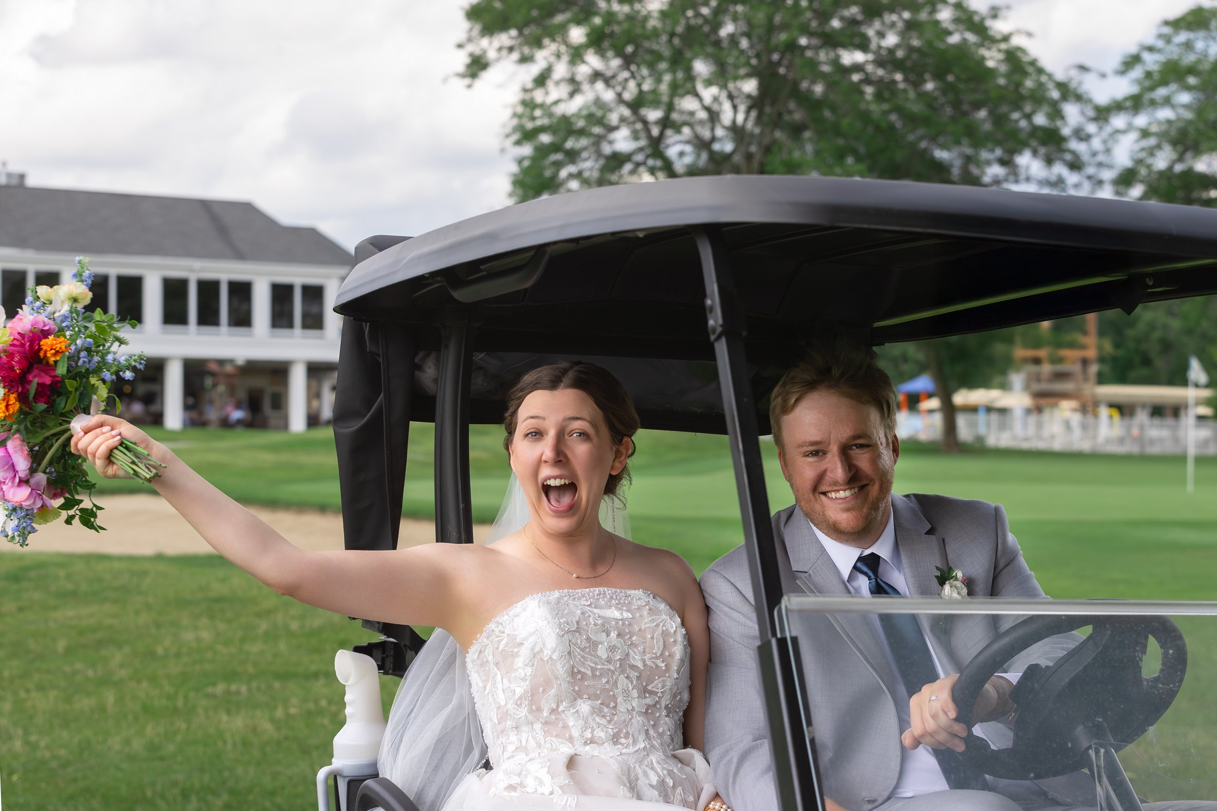 After family and wedding party portraits, everyone headed north to the River Club of Mequon. The golf course setting opened everything up—wide open afternoon light and the most beautiful willow tree right on the course. We had so much fun with portraits out there.