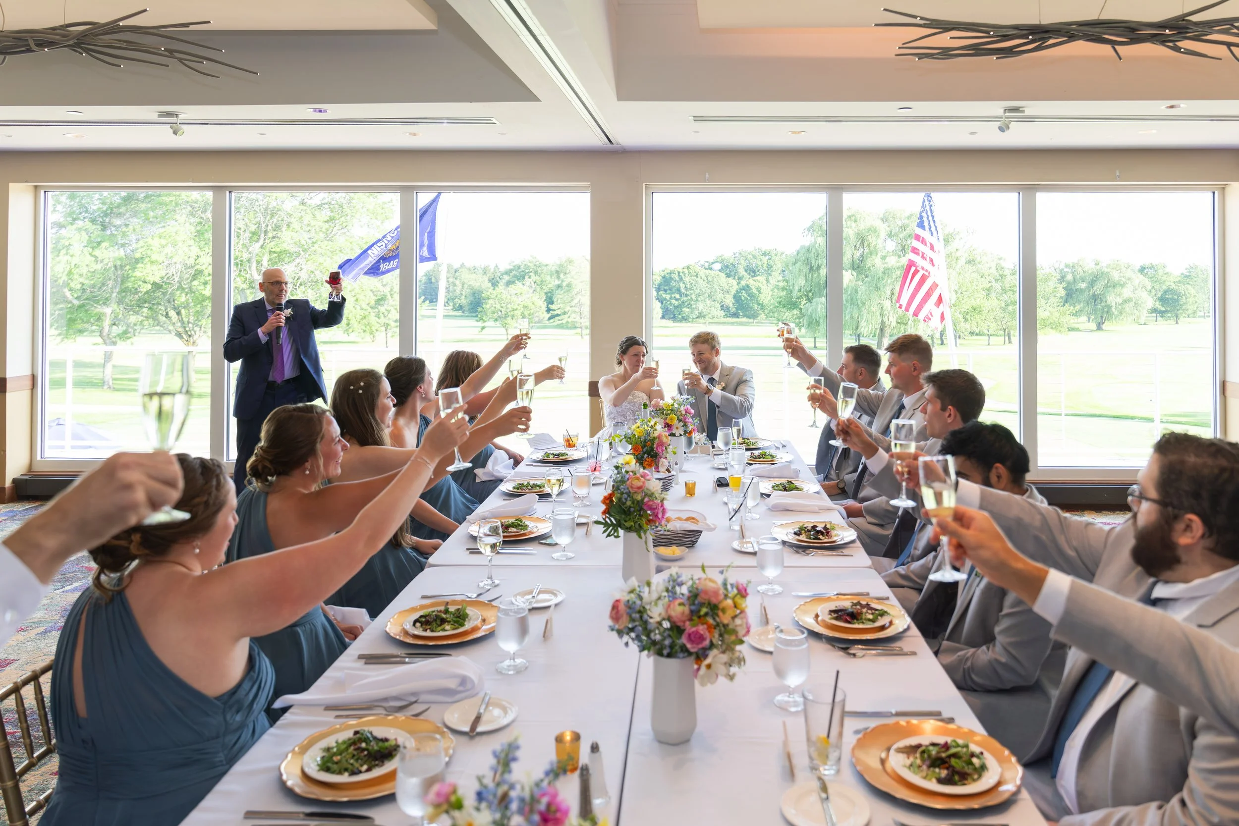 Giant windows overlooking the golf course. A summery palette of bright colors. Perfect weather and amazing food. The River Club of Mequon was such a gorgeous backdrop for the reception.