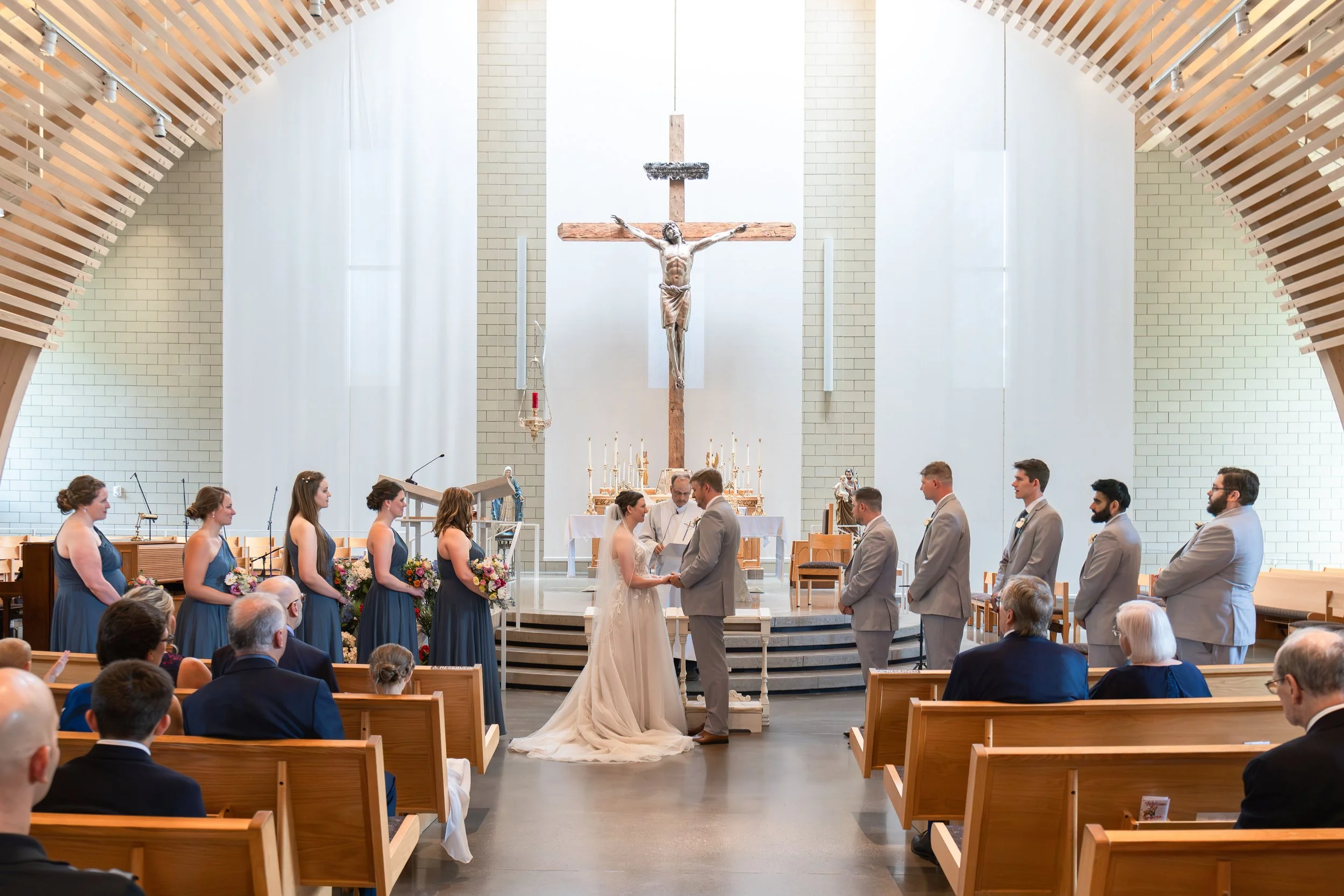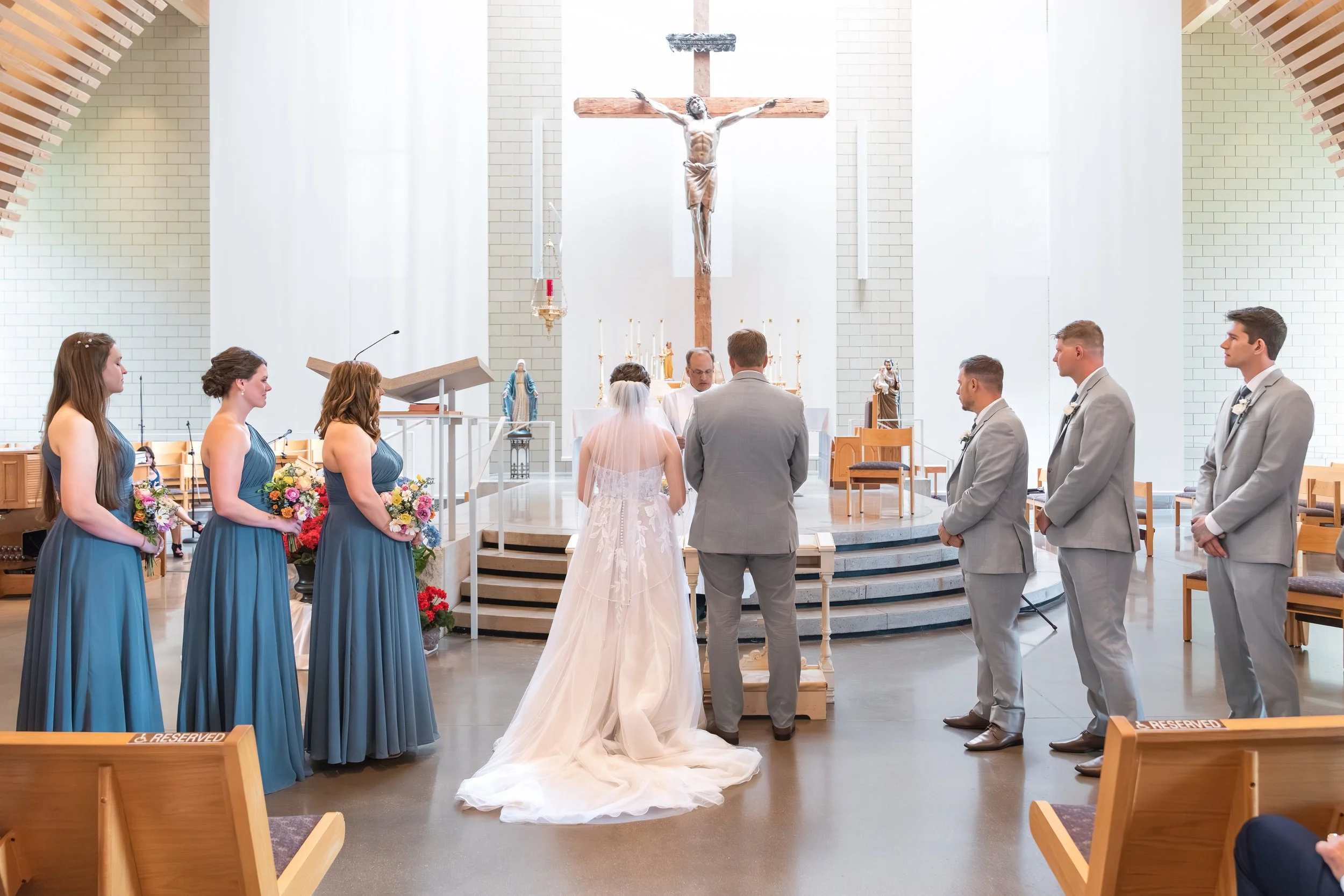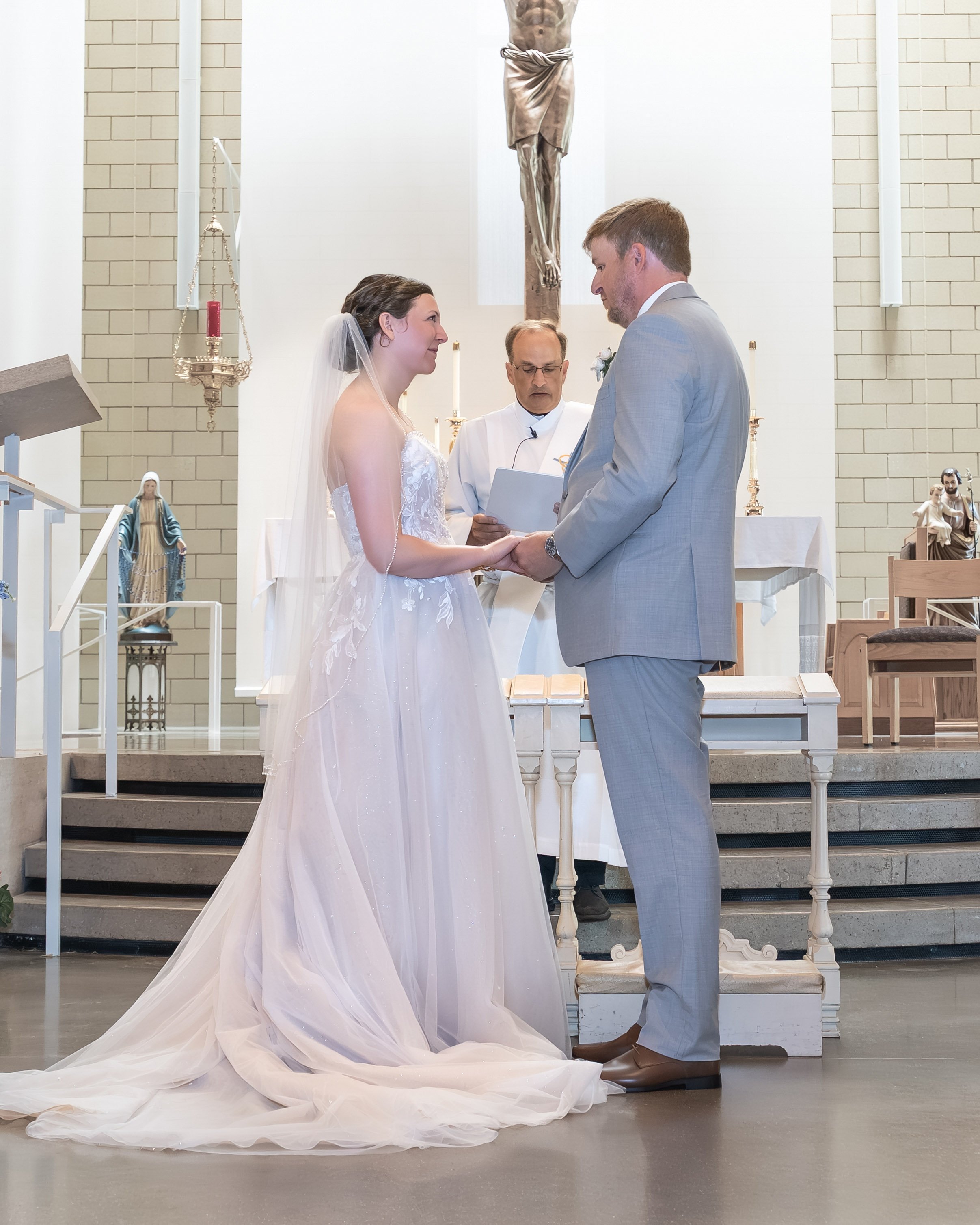 The ceremony was held at St. Anthony Catholic Church, with three readings woven in and Deacon Kevin Kalnins presiding. It was meaningful, reverent, and so full of love.