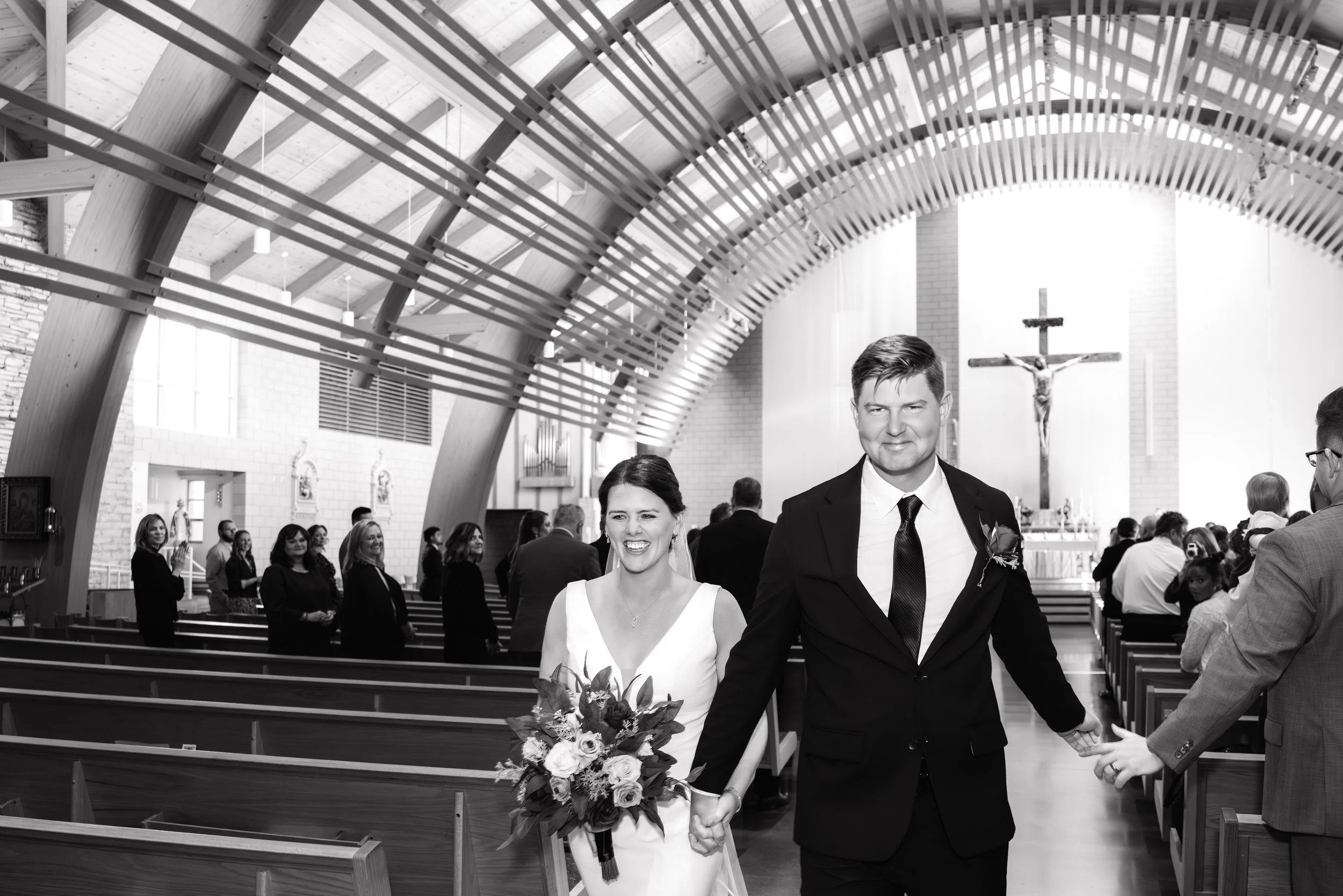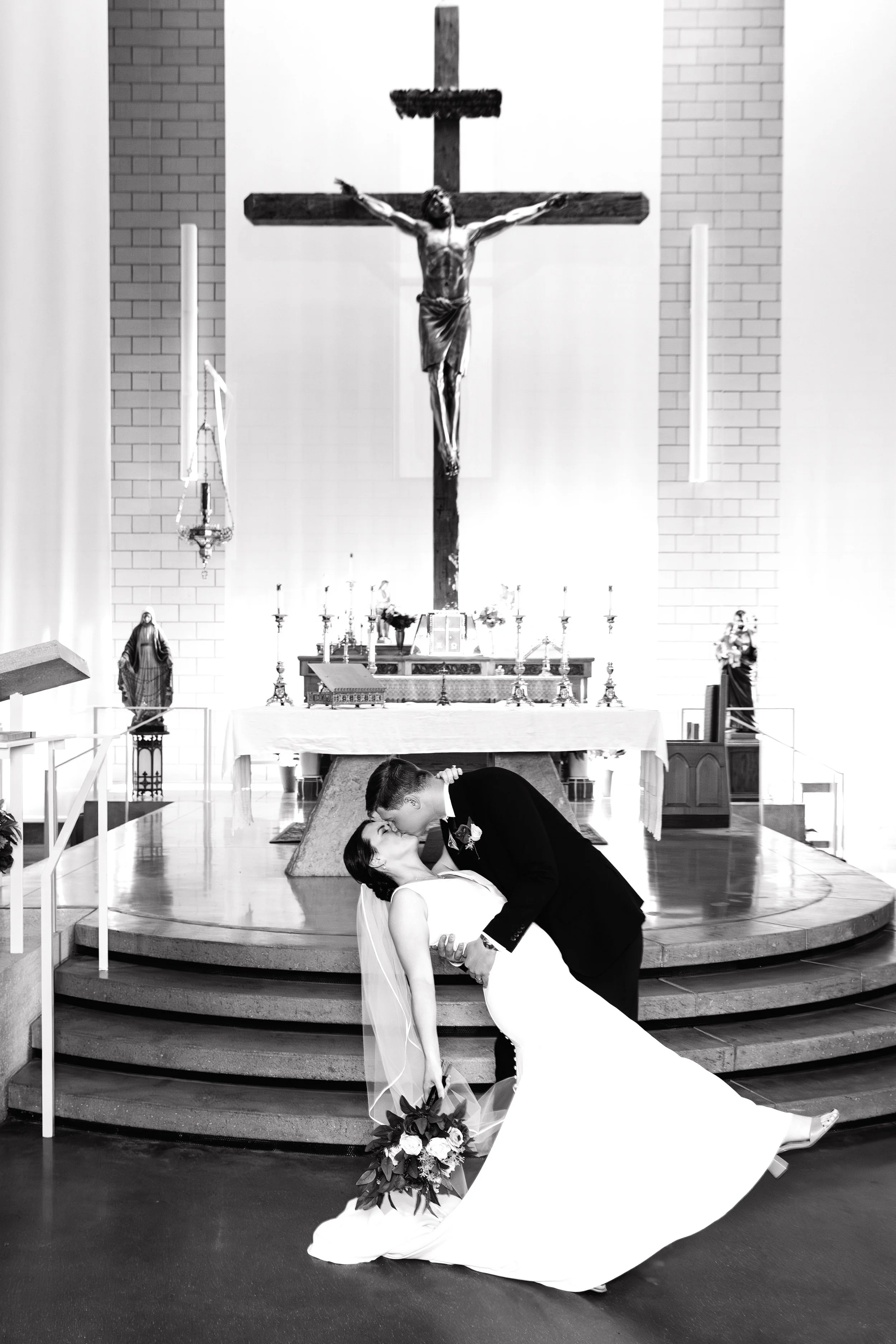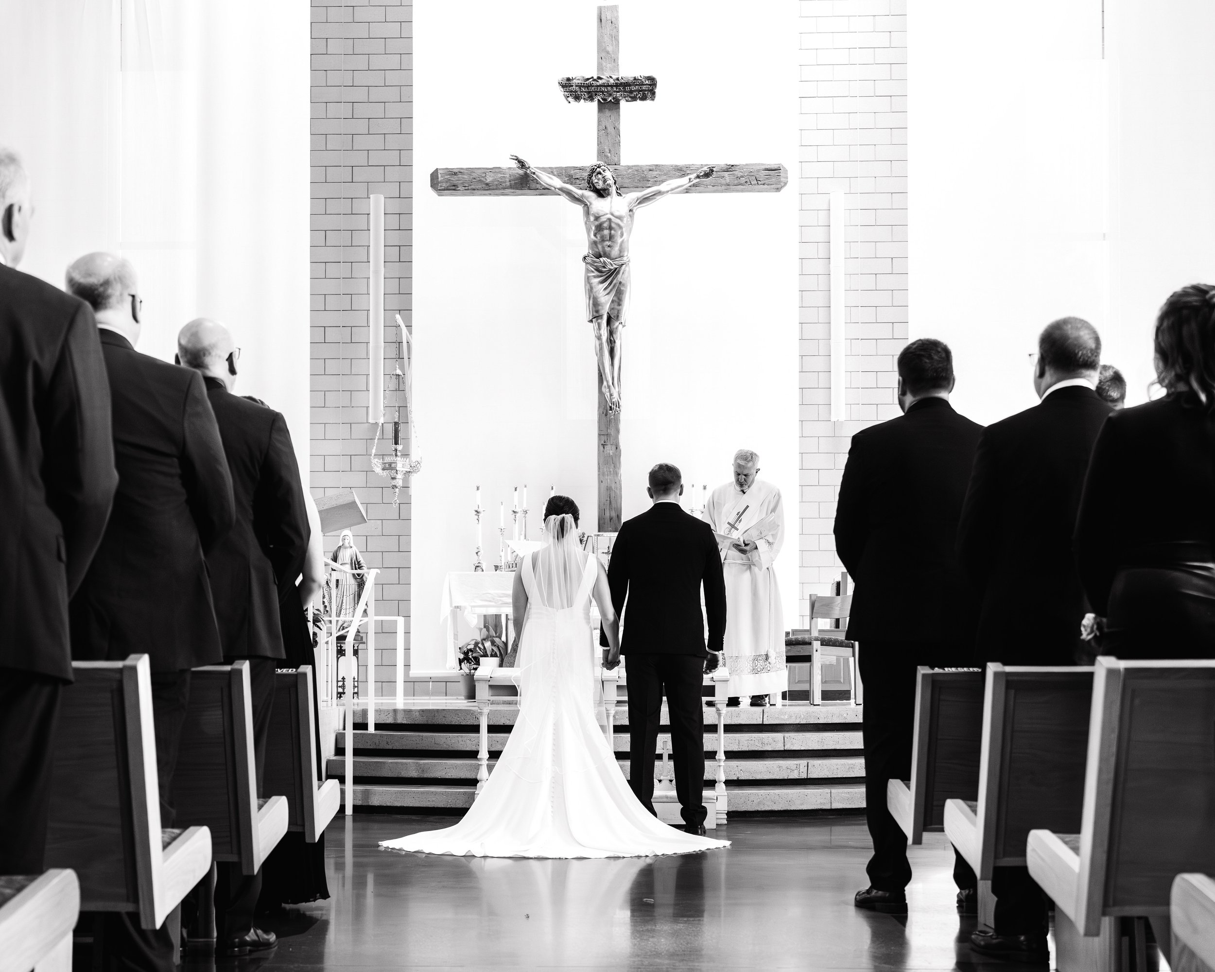 The ceremony was at St. Anthony's Church in Menomonee Falls—a spot that already means a lot to Hailey's family. All three Mohrfeld sisters got married there, so it's officially part of their family story. I've had the honor of photographing two of those weddings, which made walking back into that space feel extra special for me too!