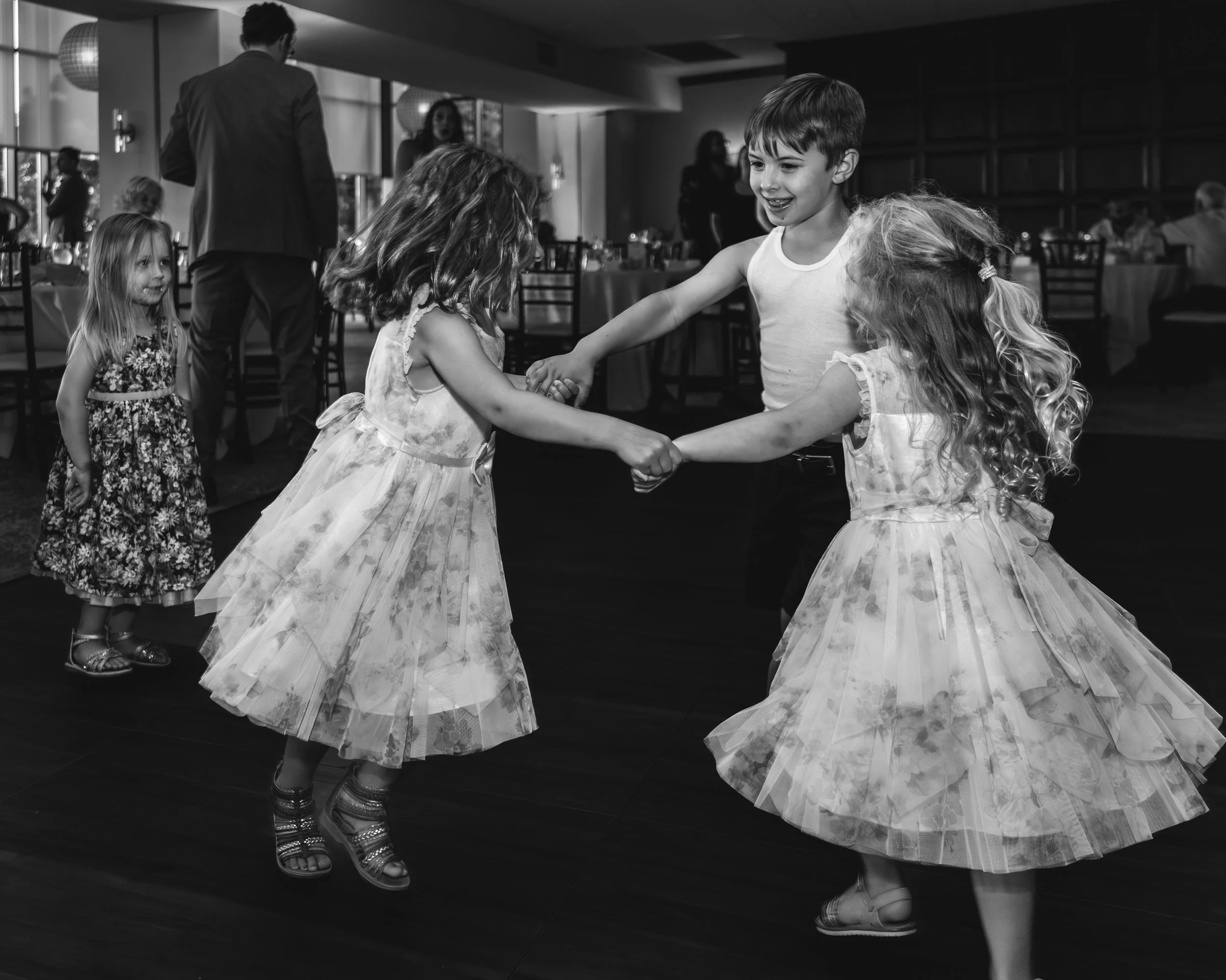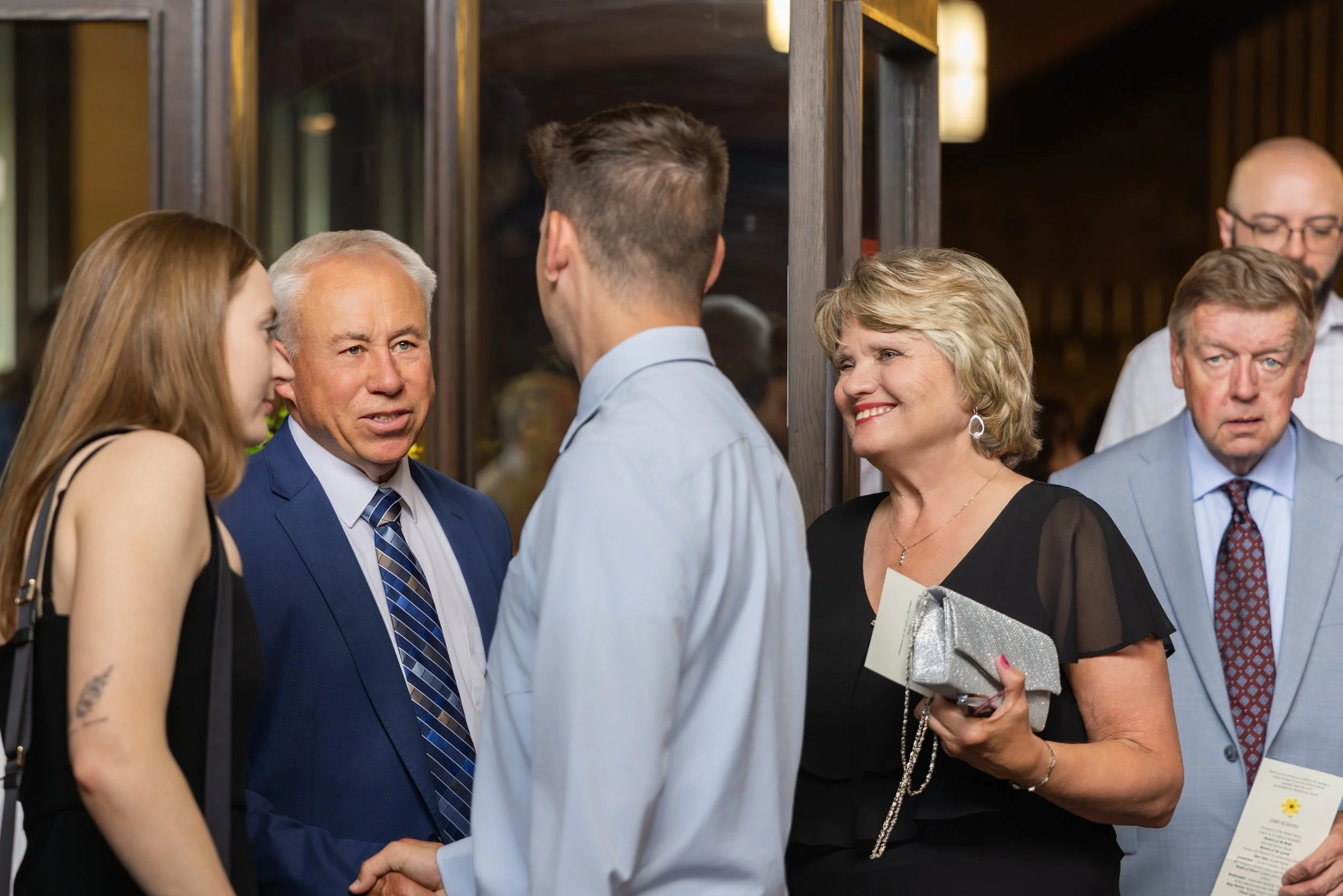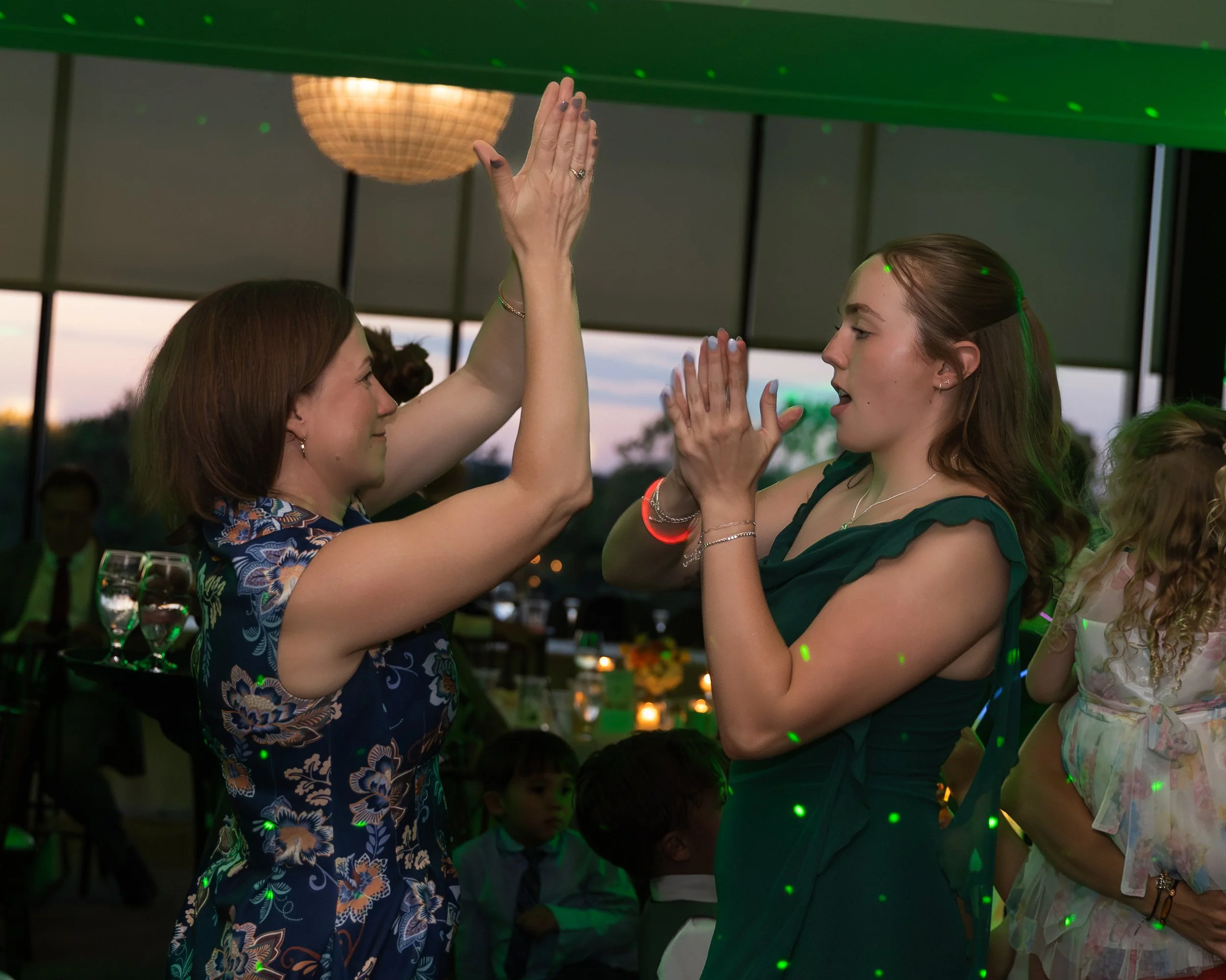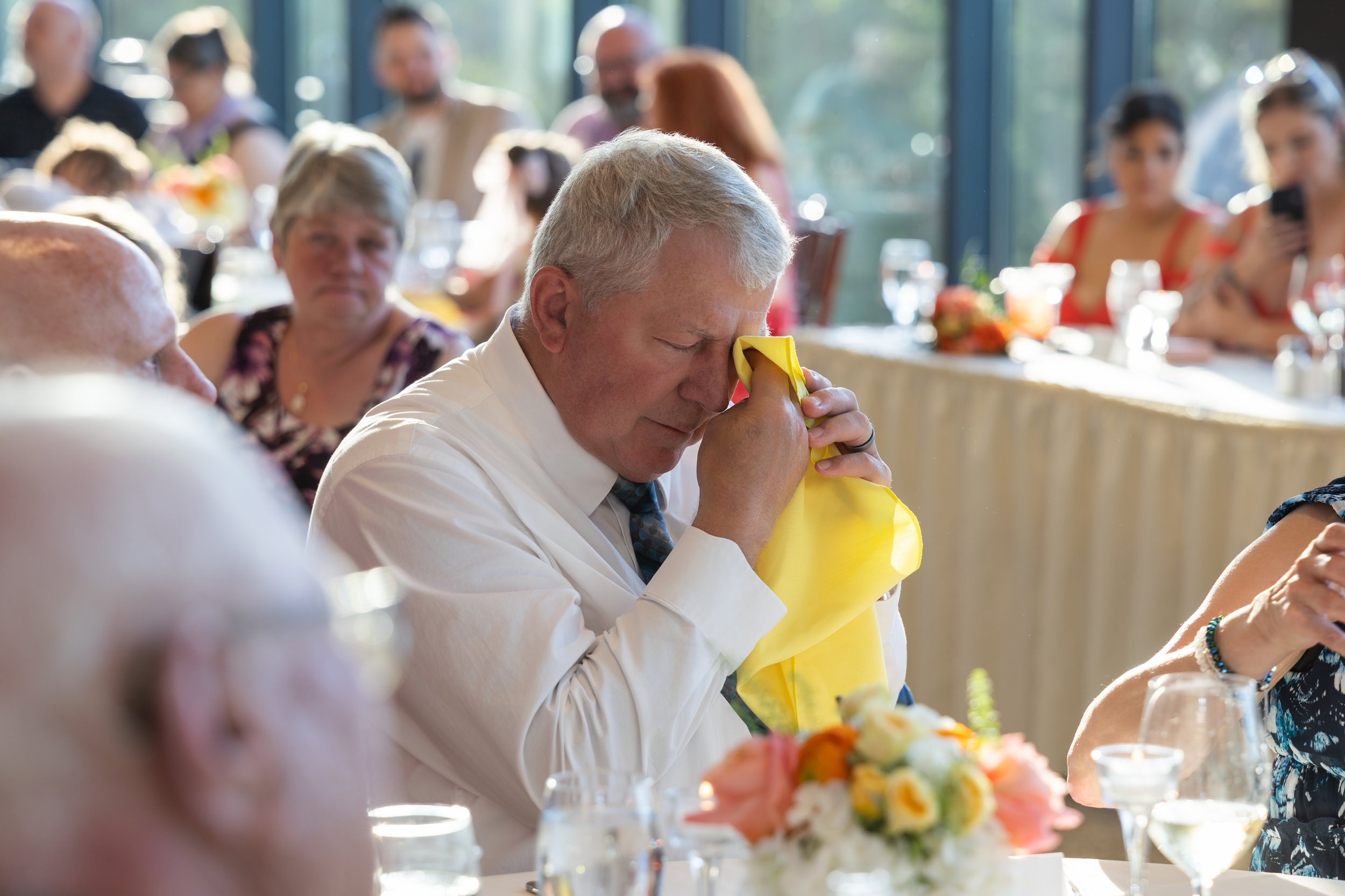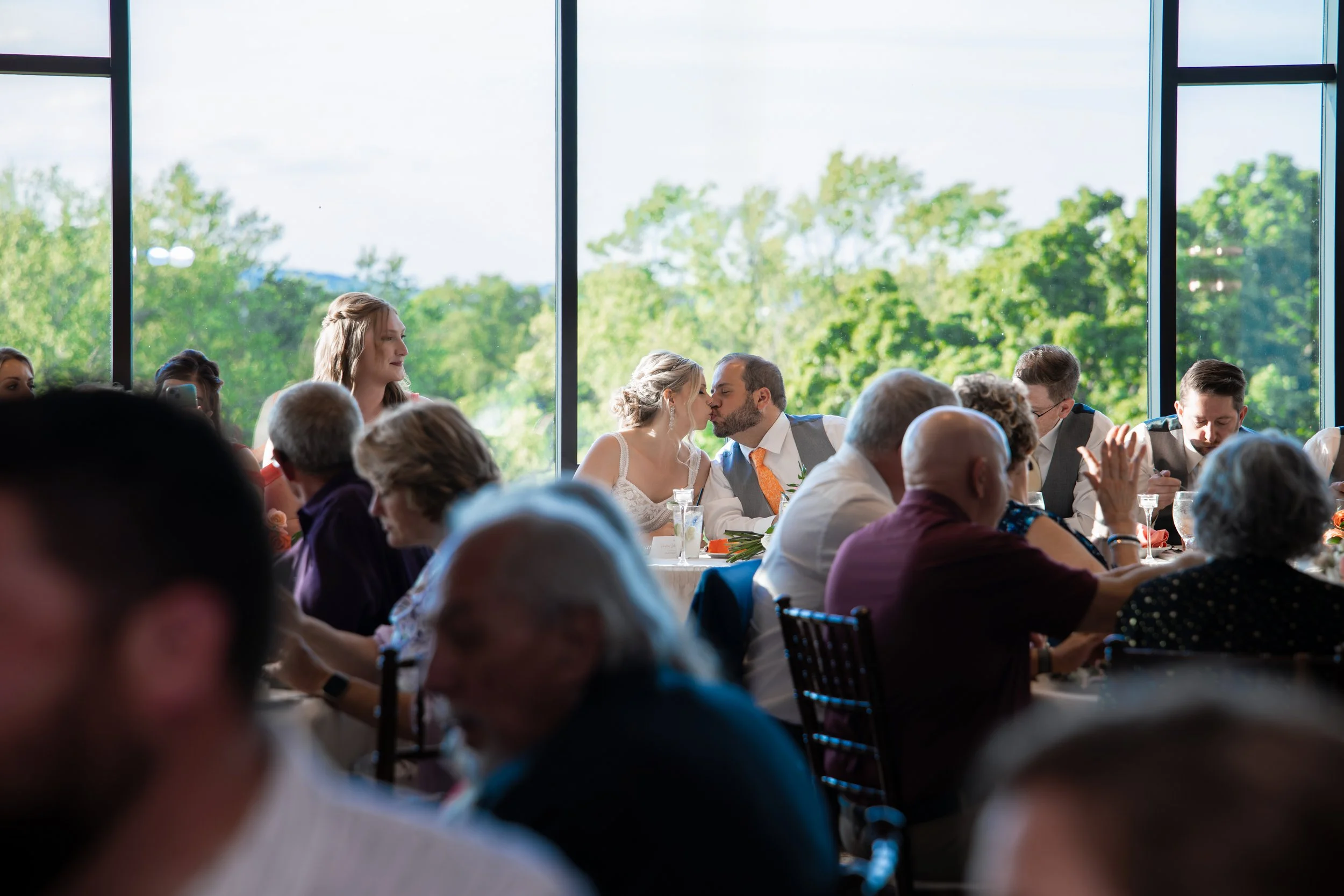 Big family, multiple generations, and a dance floor that filled up fast. The citrus colors carried right into the reception space and the room just felt alive all night. Dinner, toasts, dancing—so much fun.
