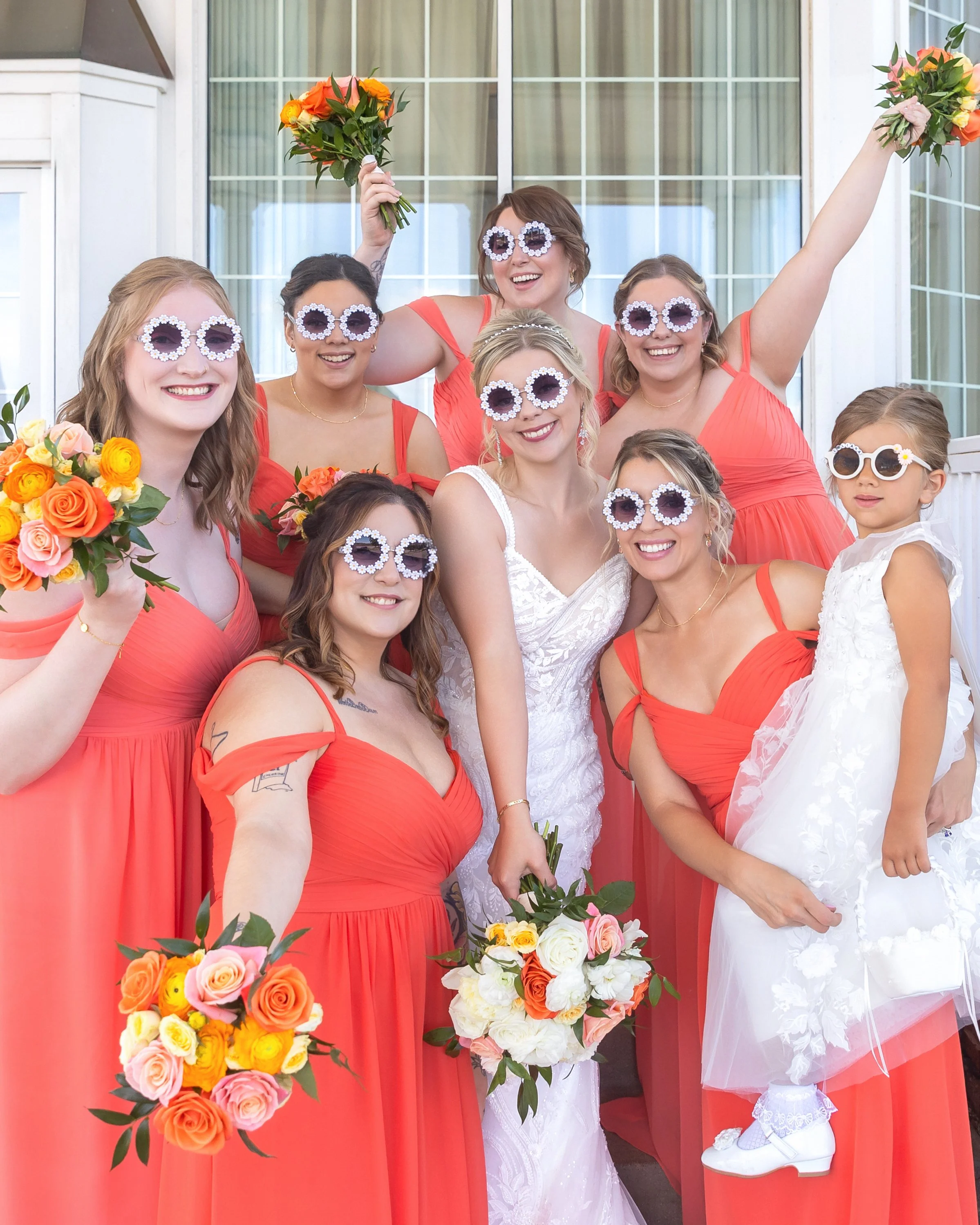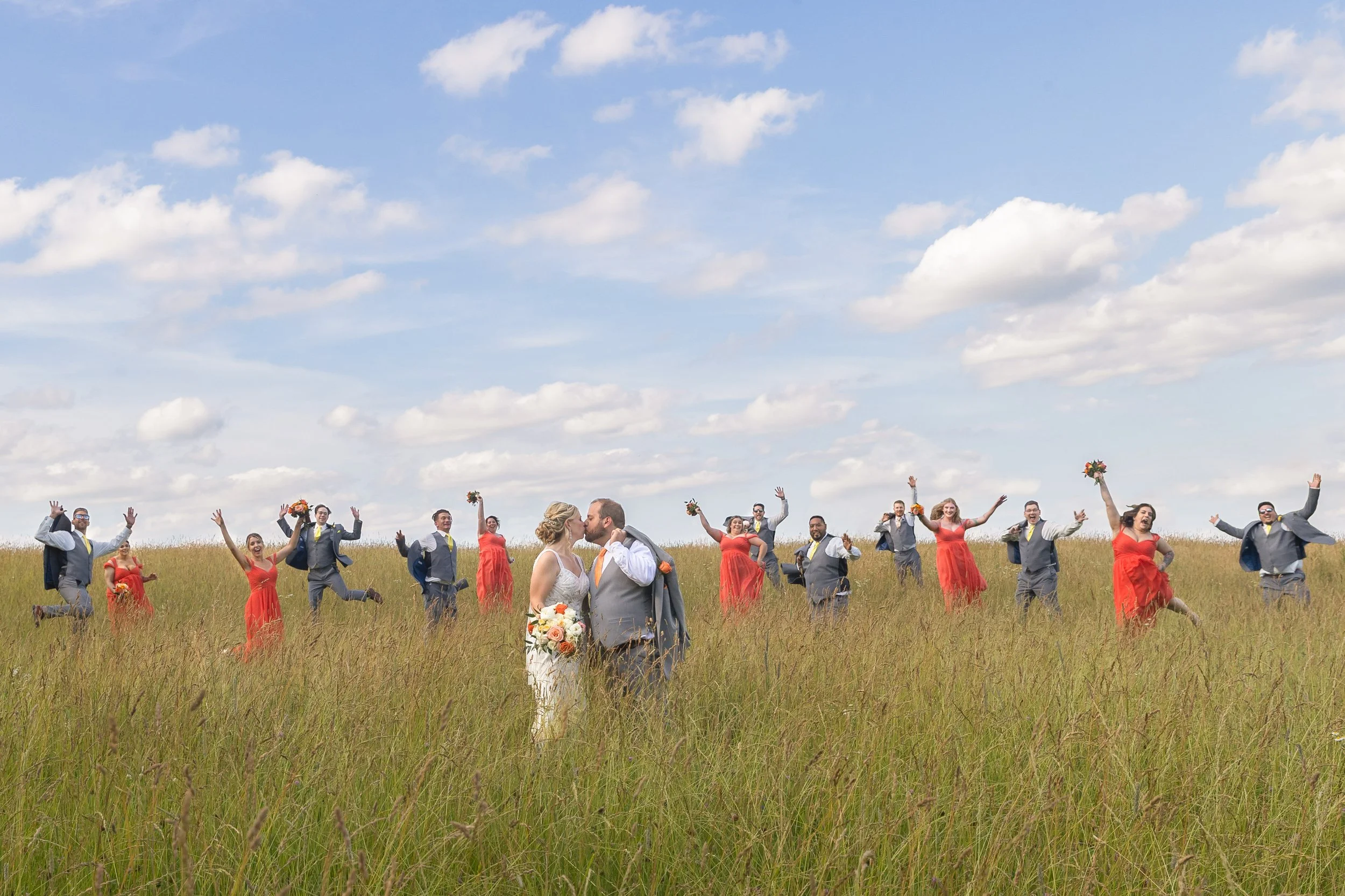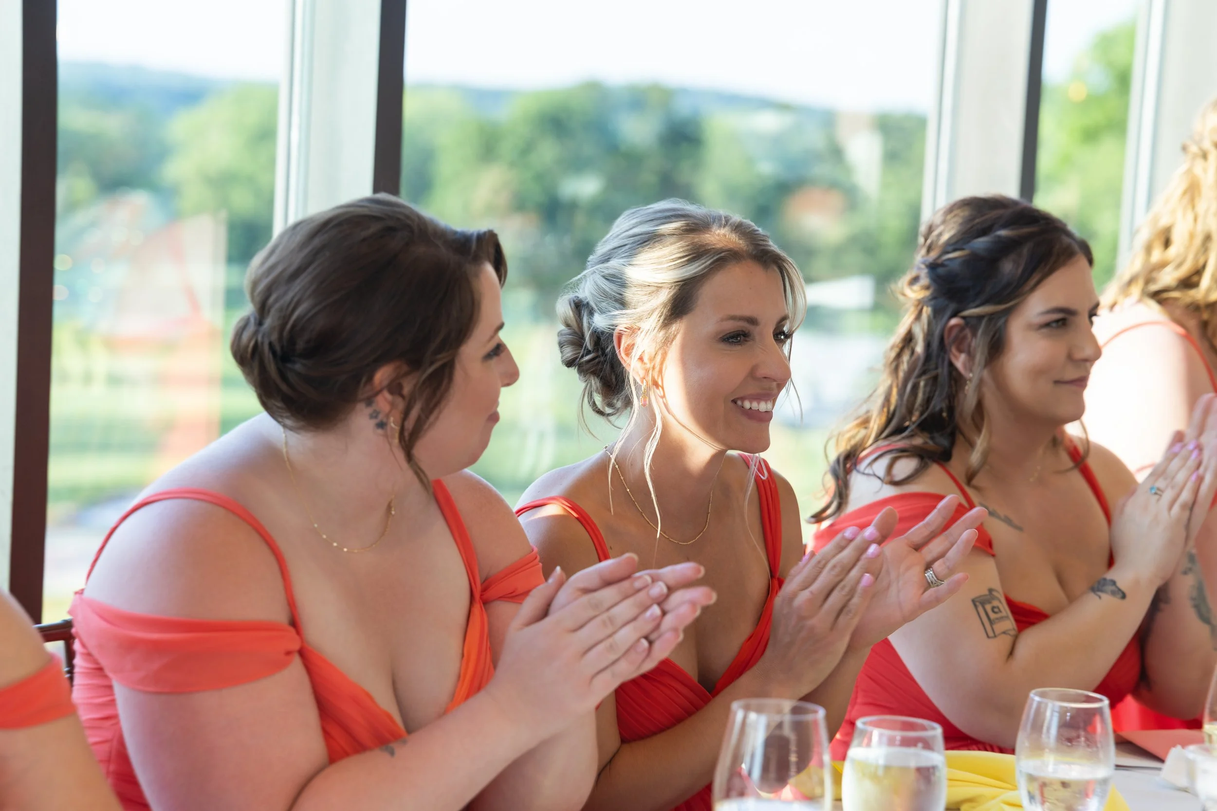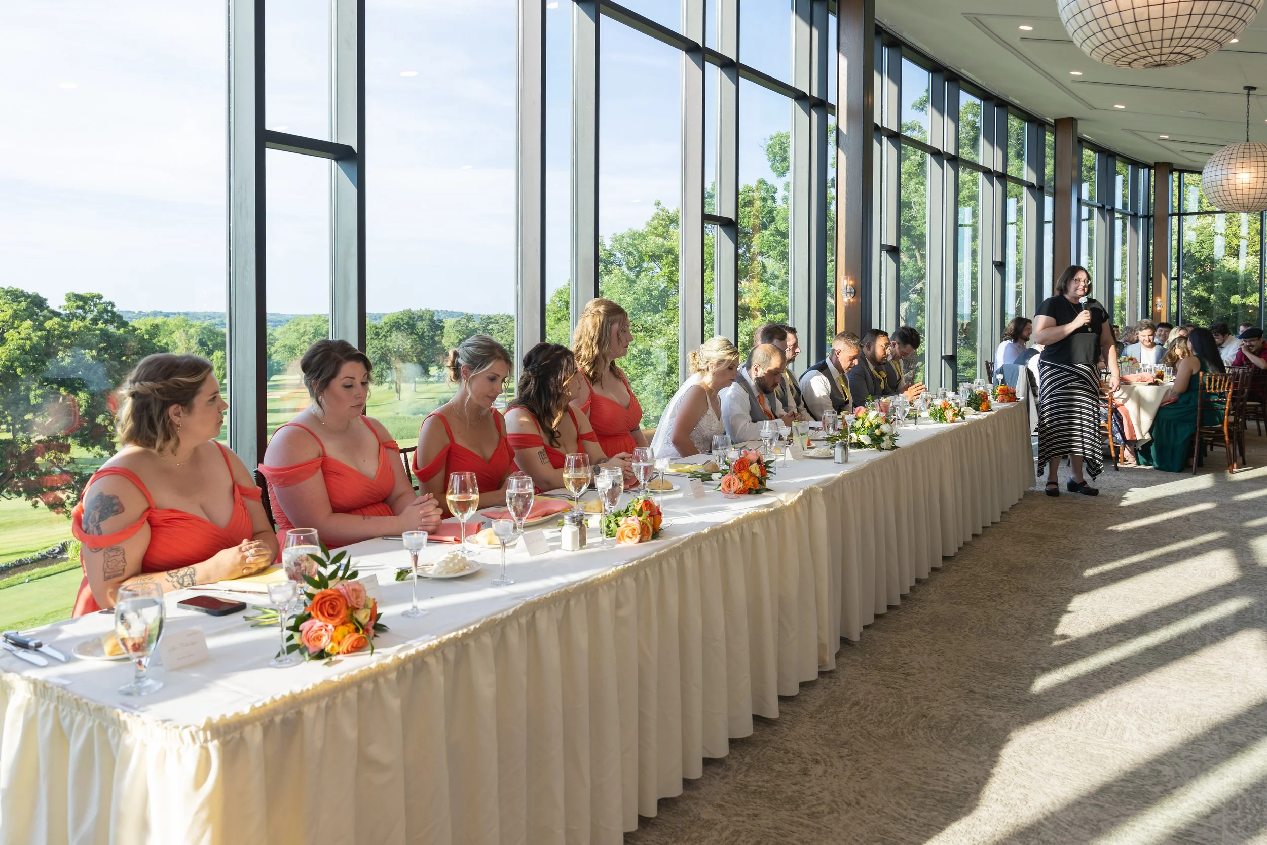 Grapefruit, mango, and yellow against the deep greens of early summer—it was such a gorgeous combination and looked stunning in every photo. The wedding party absolutely rocked it.
