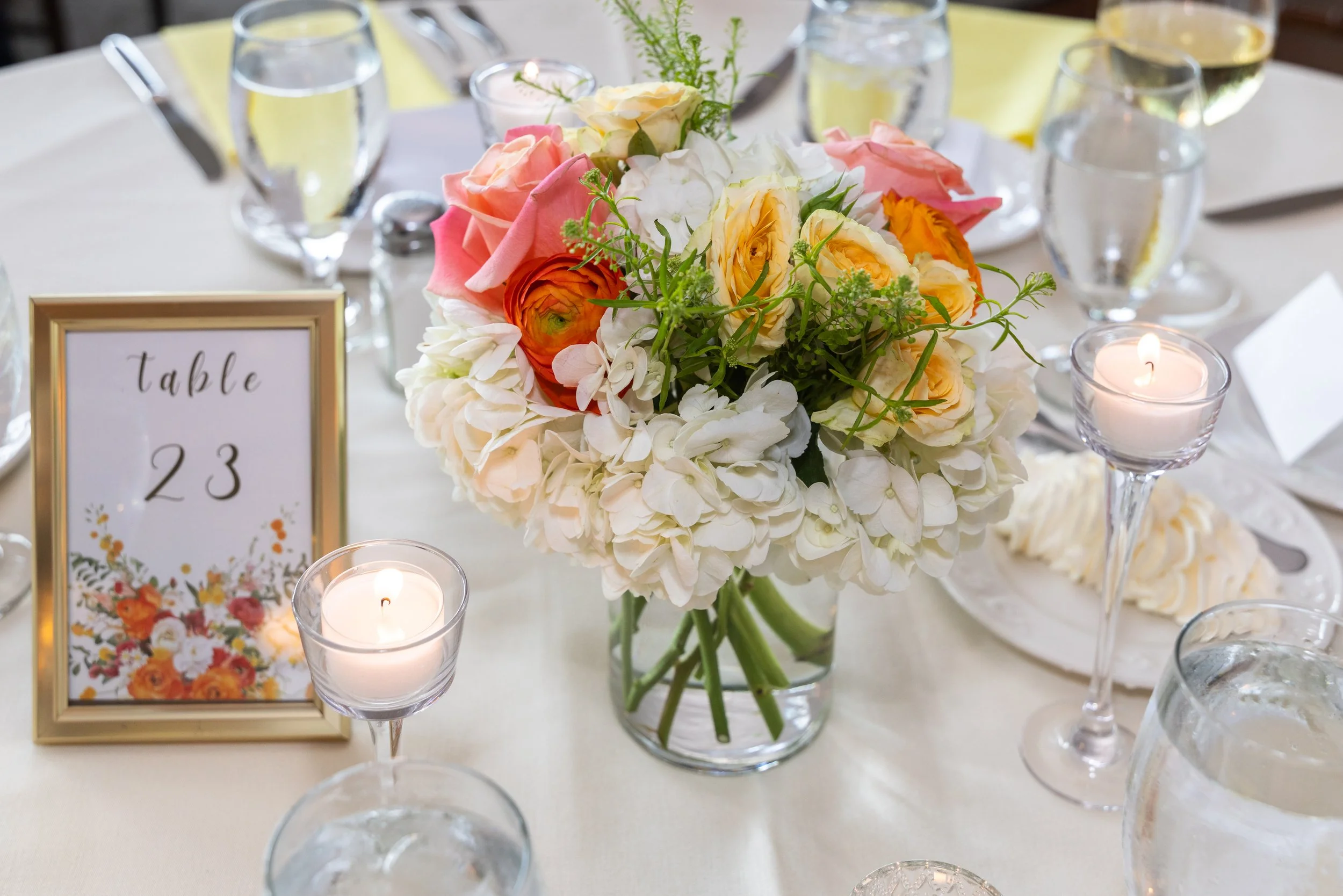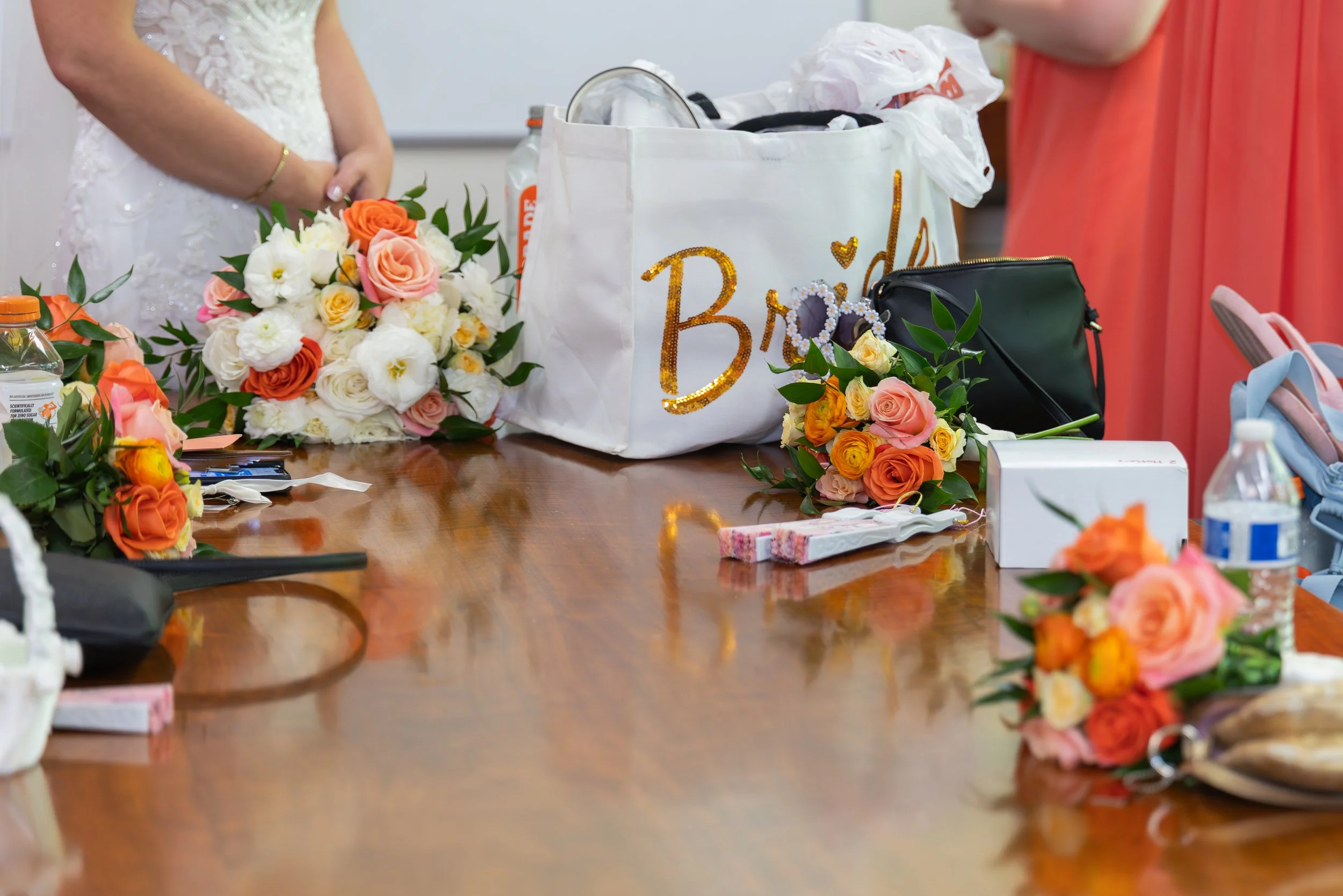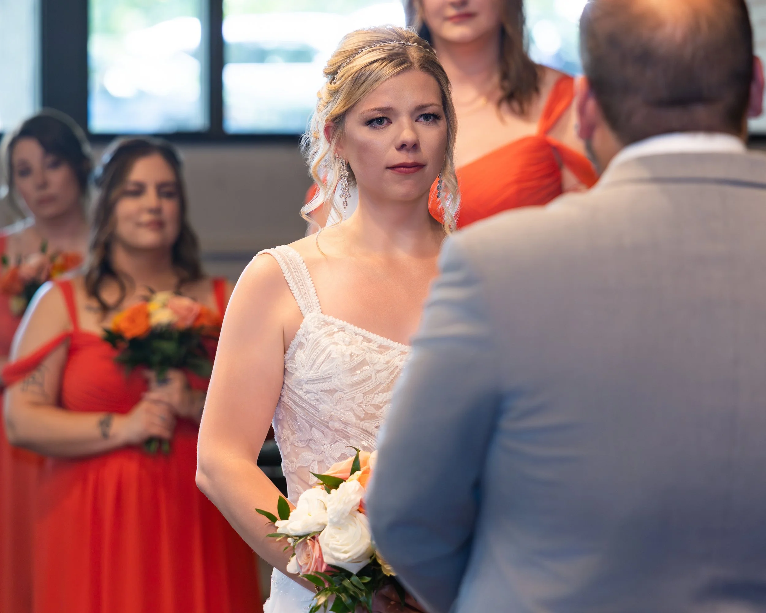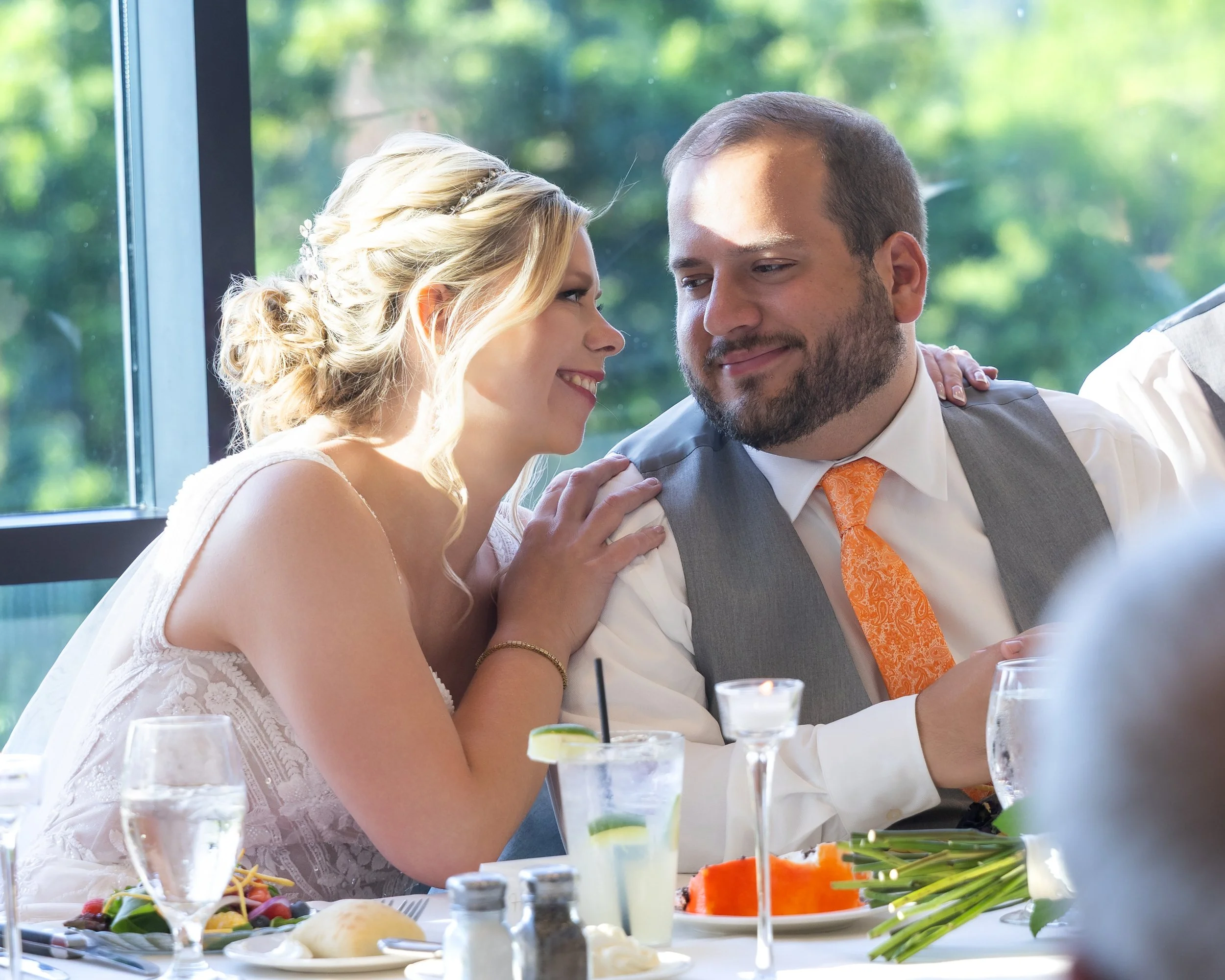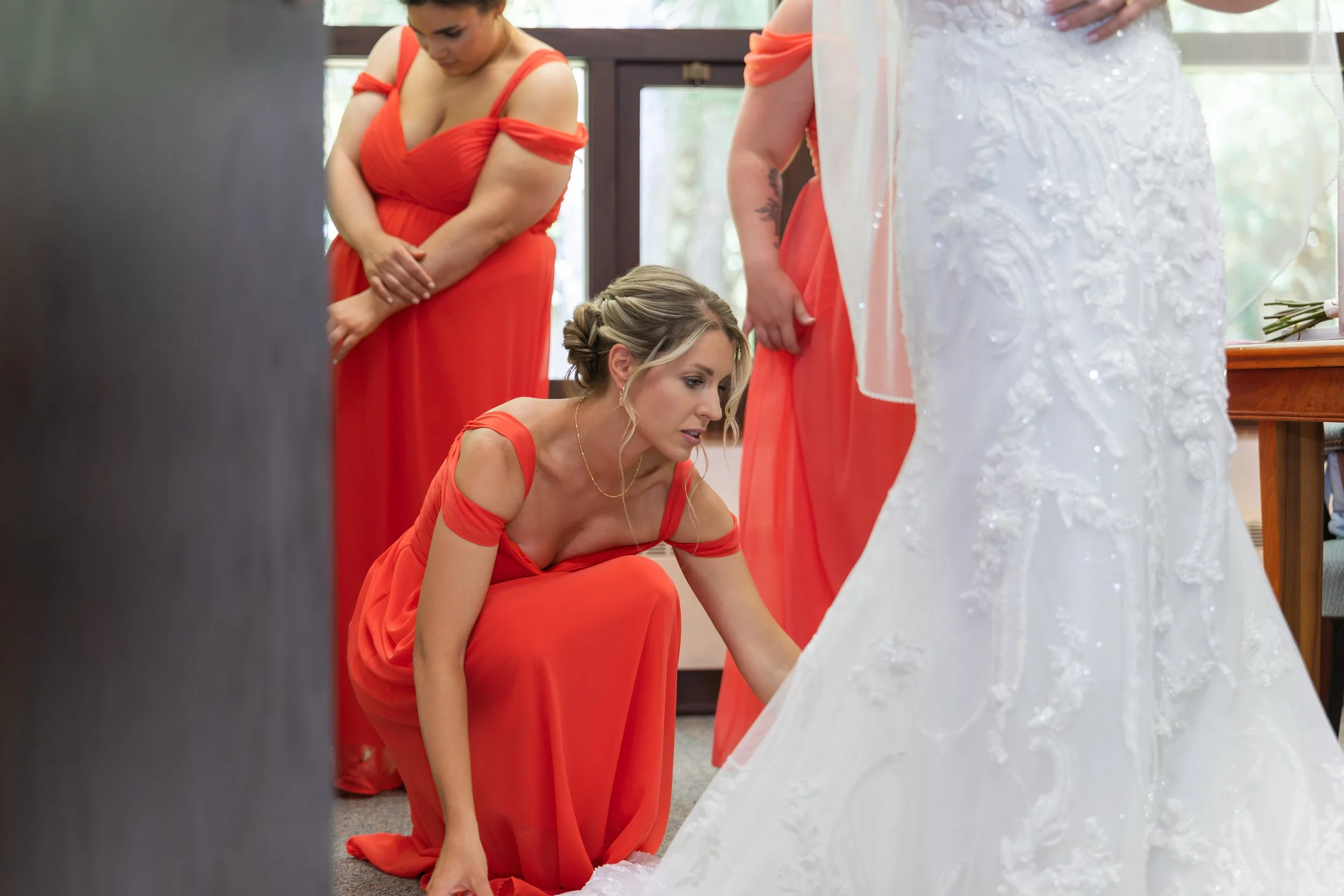 Grapefruit, mango, and yellow against the deep greens of early summer—it was such a gorgeous combination and looked stunning in every photo. The wedding party absolutely rocked it.