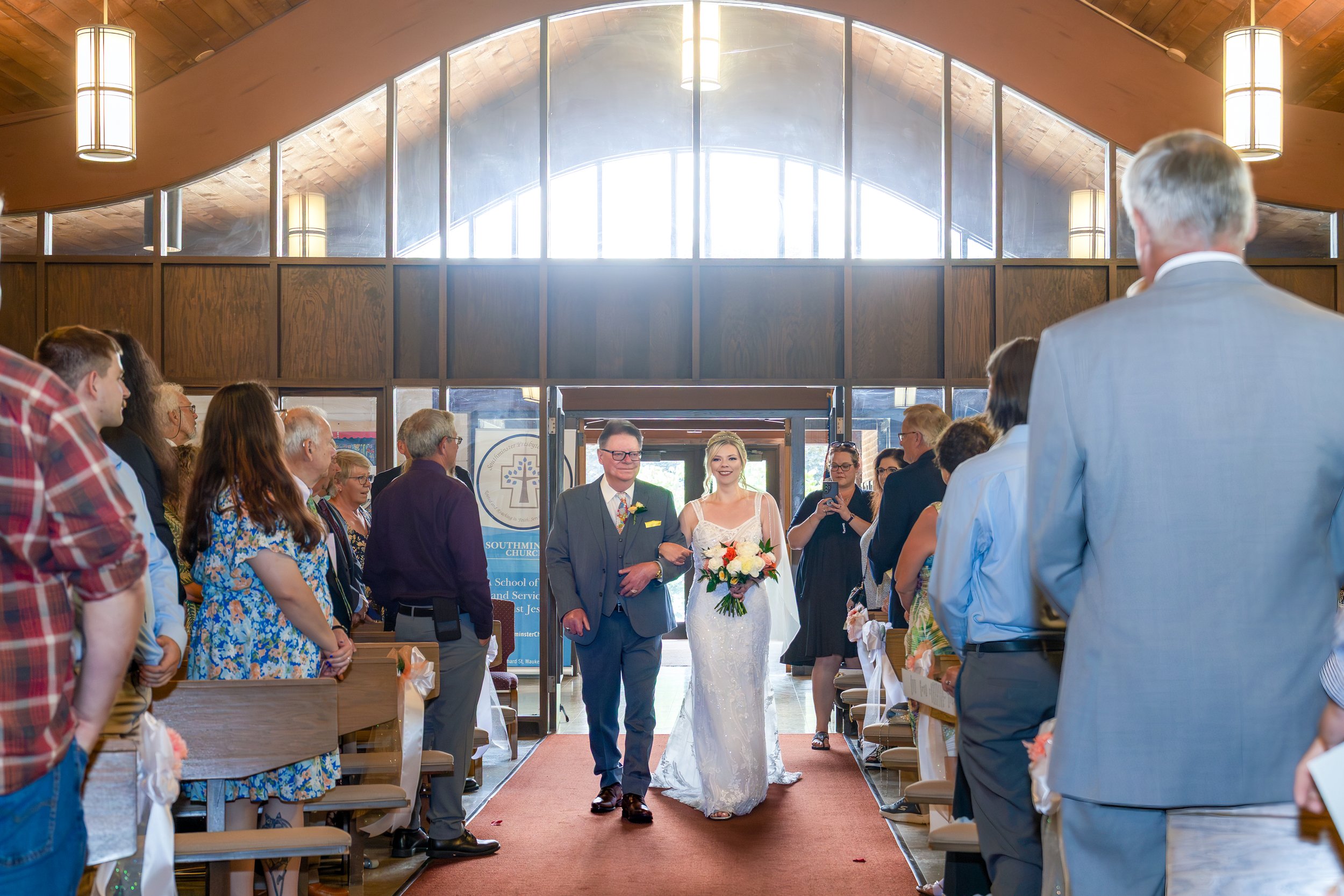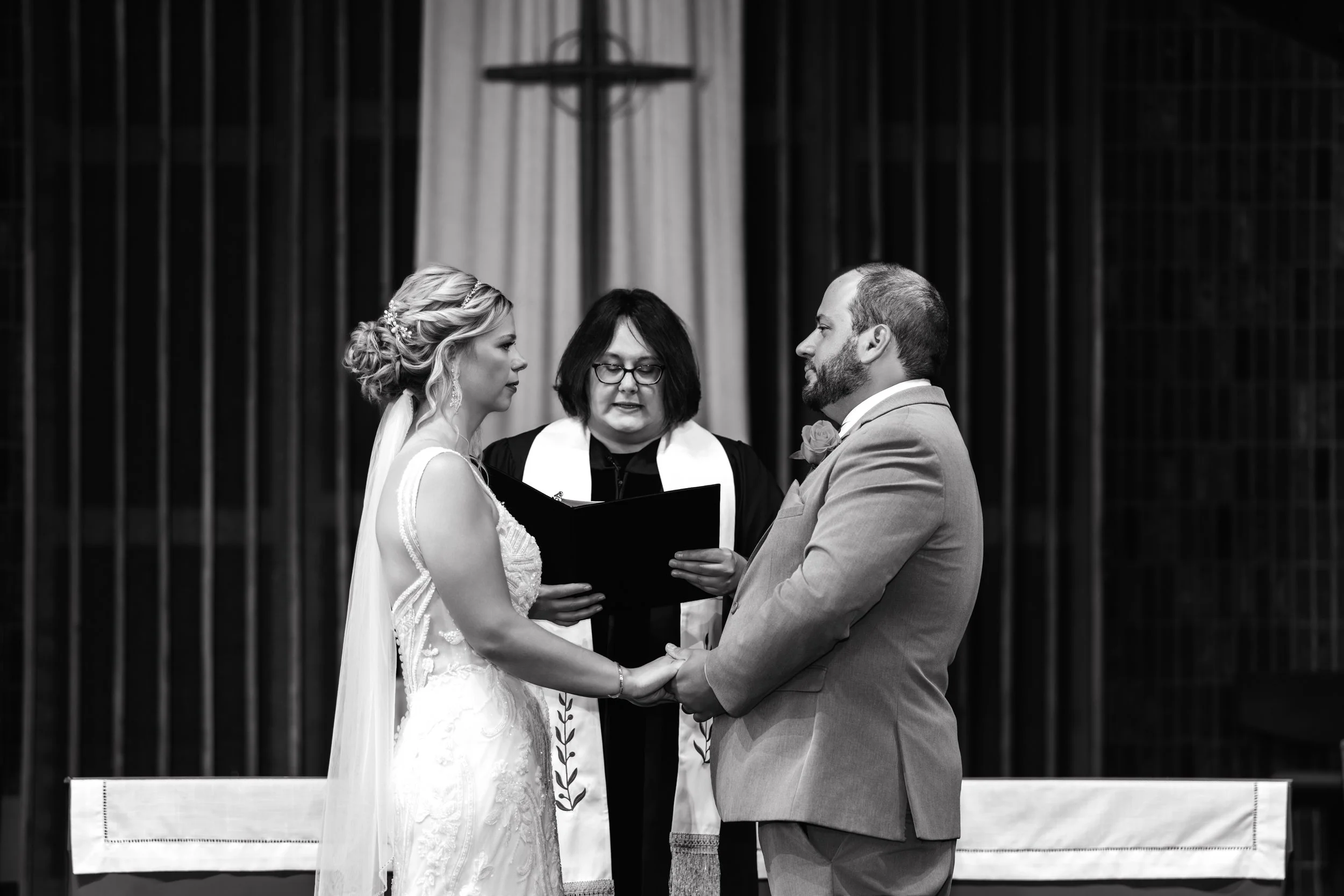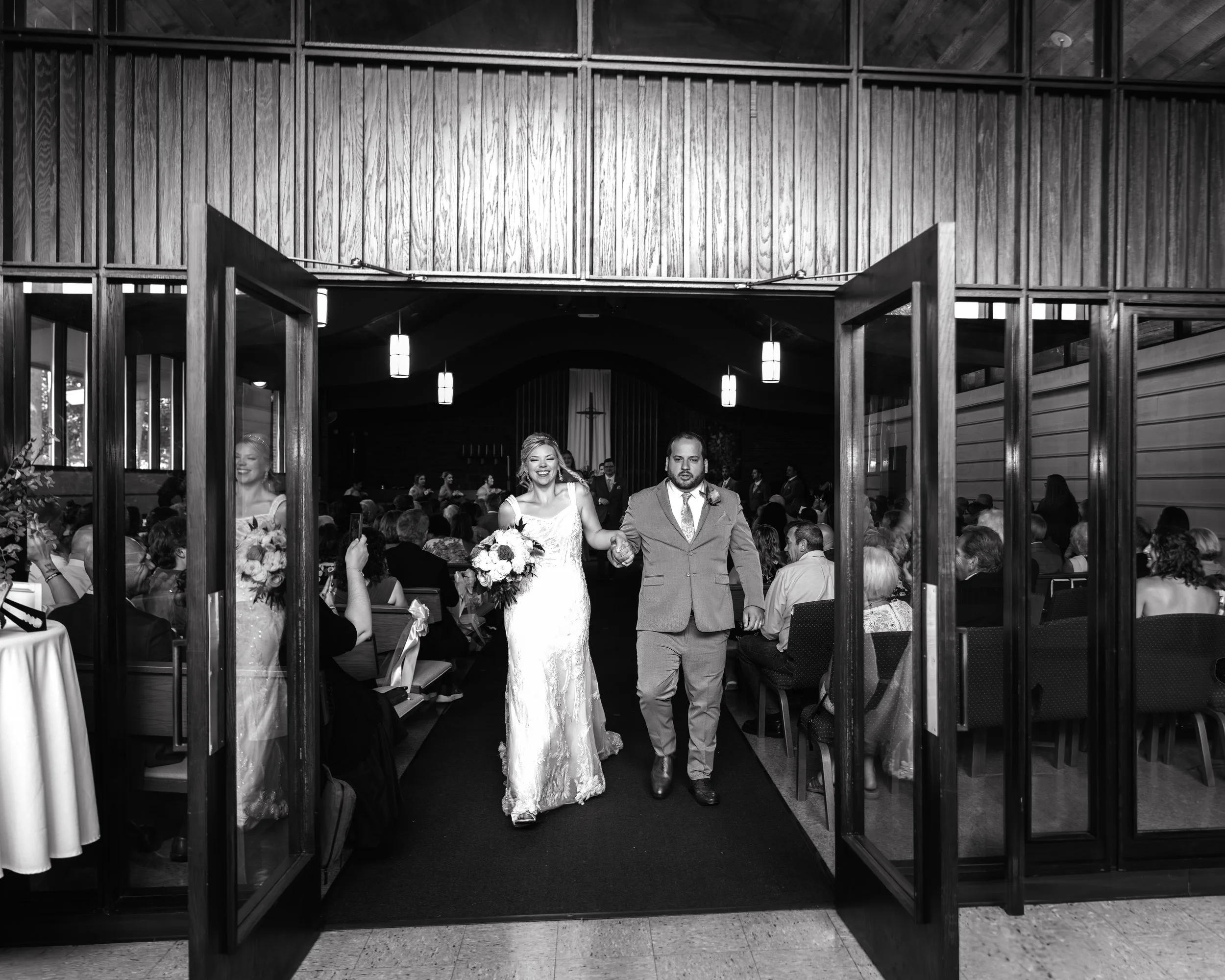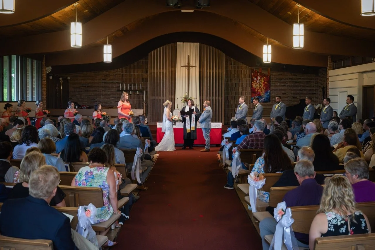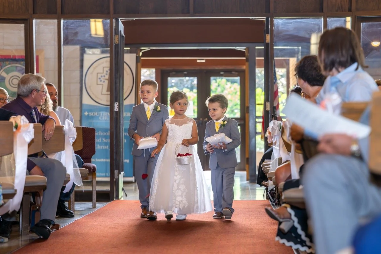 The ceremony at Southminster Presbyterian Church was warm, personal, and beautifully simple—just vows, a unity candle, and the people who love them most filling the pews.