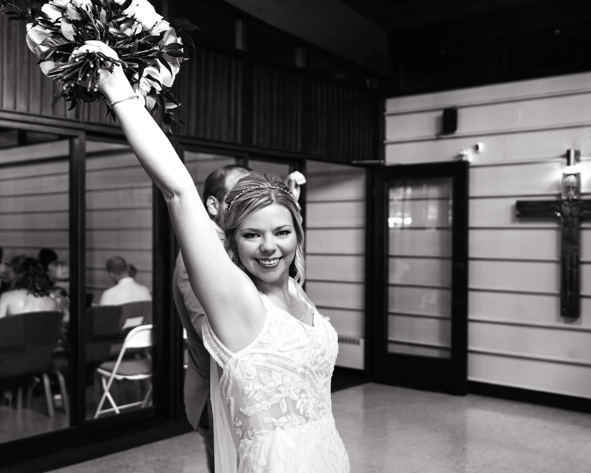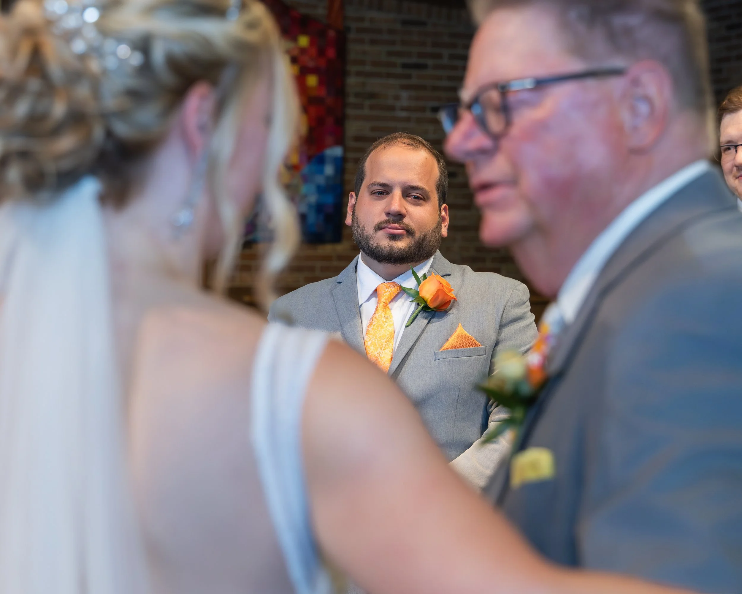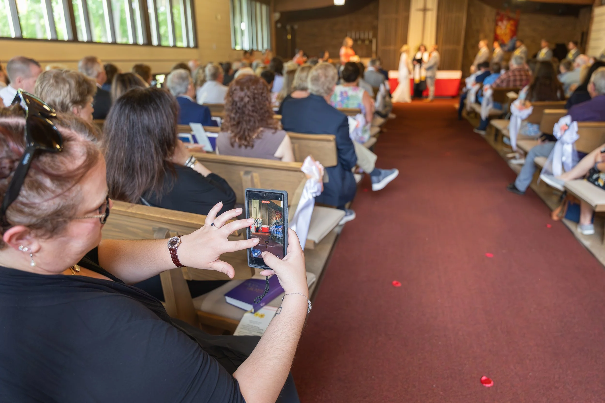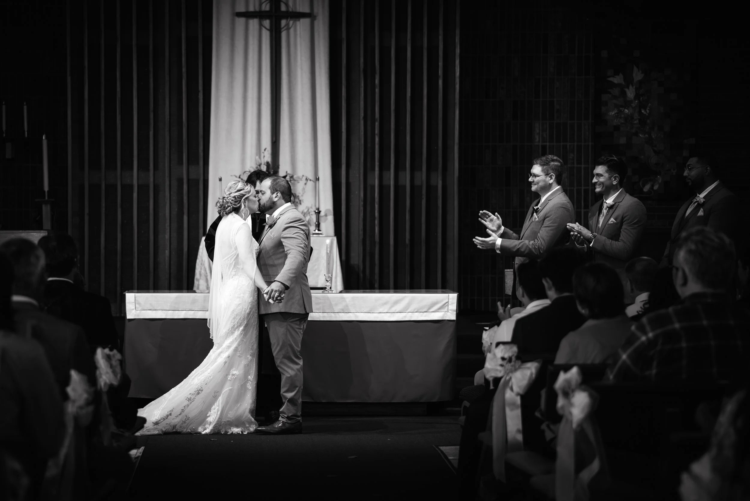 The ceremony at Southminster Presbyterian Church was warm, personal, and beautifully simple—just vows, a unity candle, and the people who love them most filling the pews.
