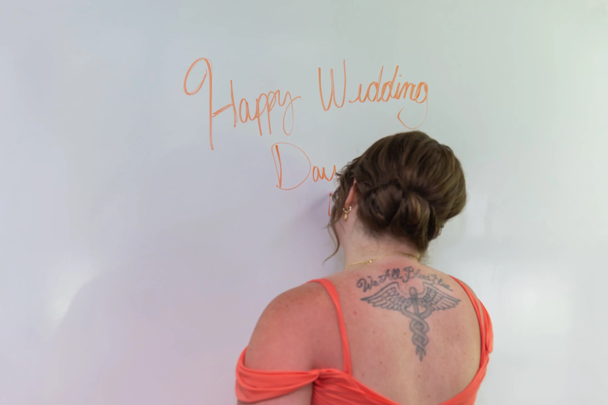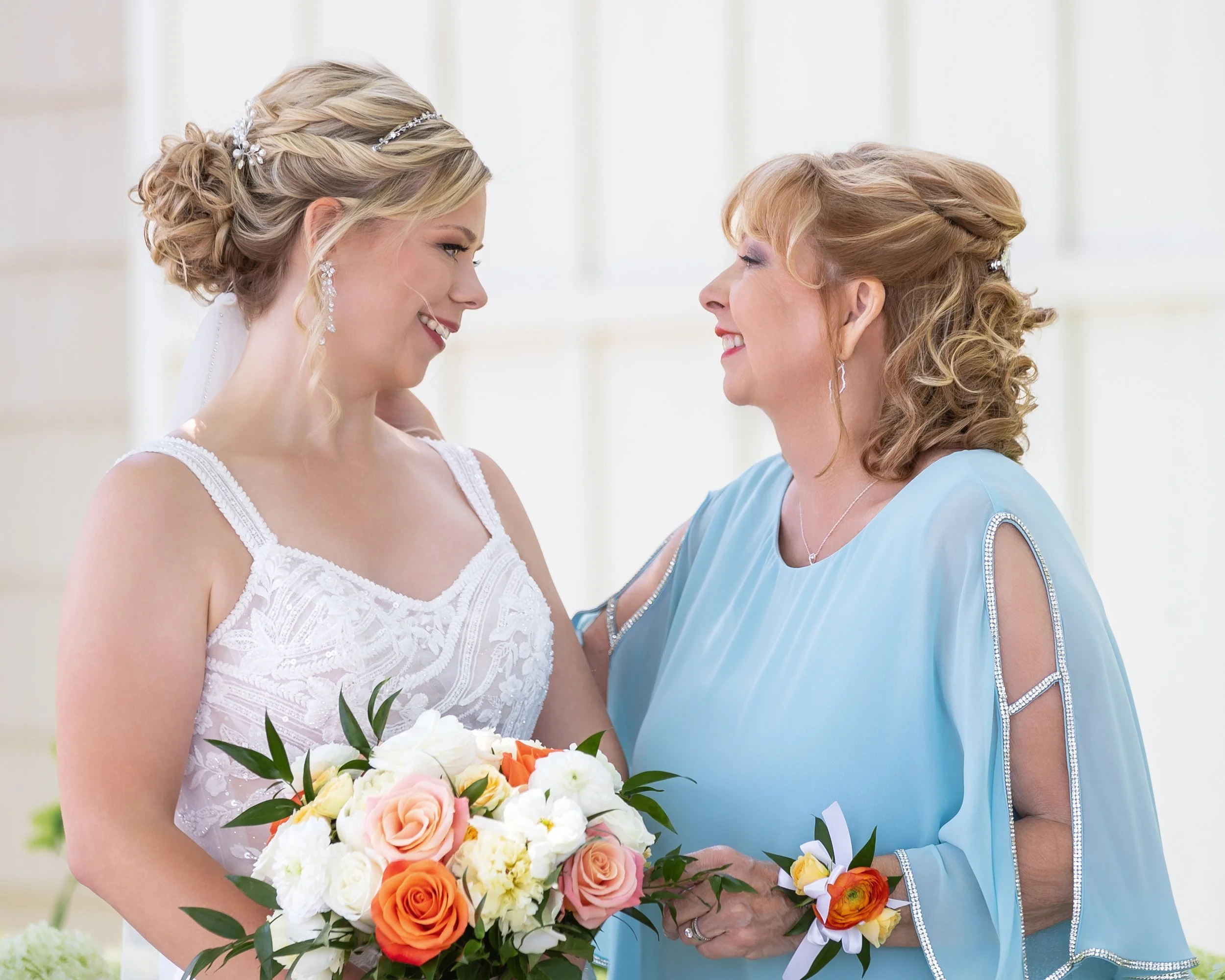 Hayley got ready with her bridesmaids in a room full of grapefruit and mango tones. The citrus palette looked so fresh and happy against the summer light, and it carried through the entire day.
