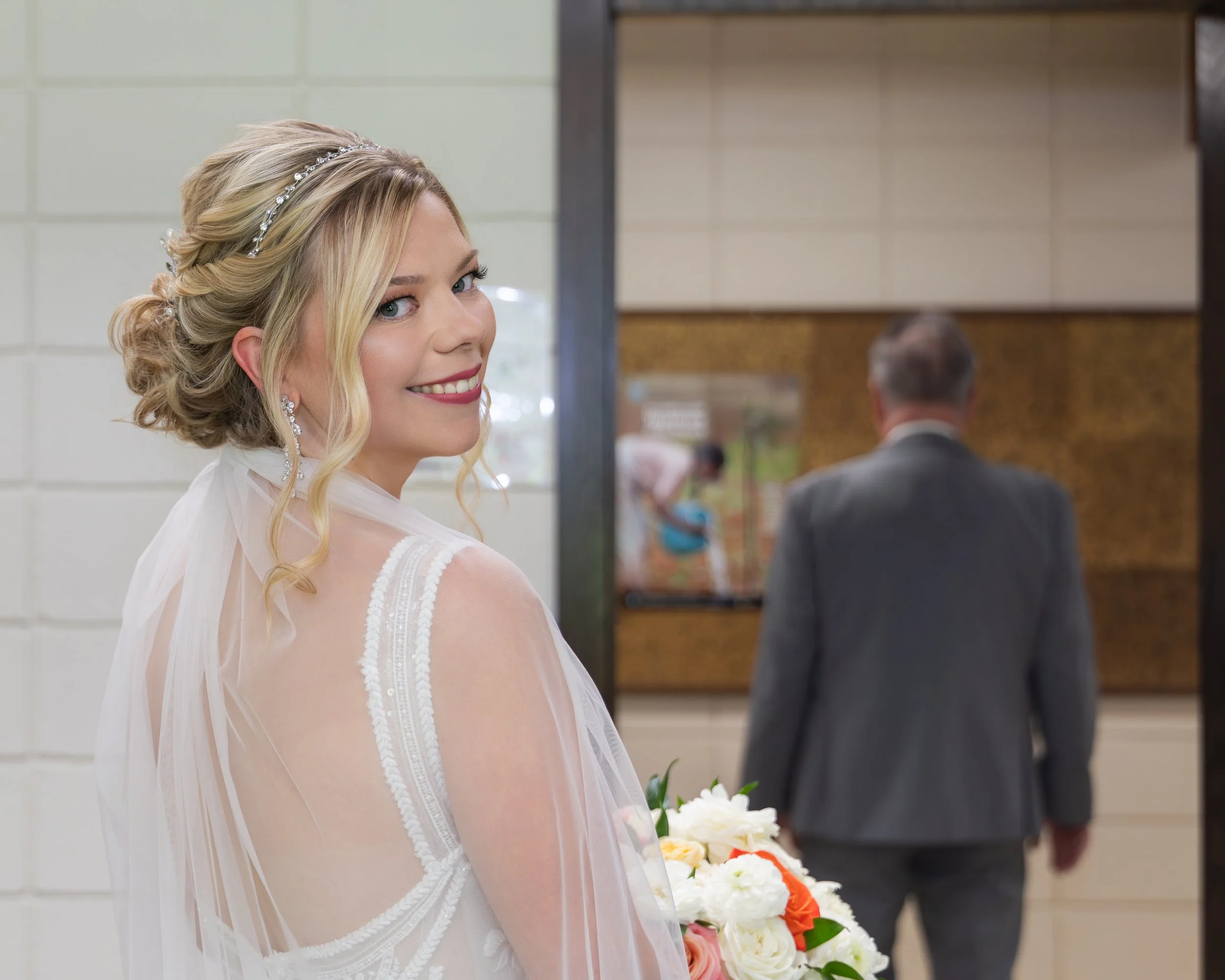 A quick first look with her dad!