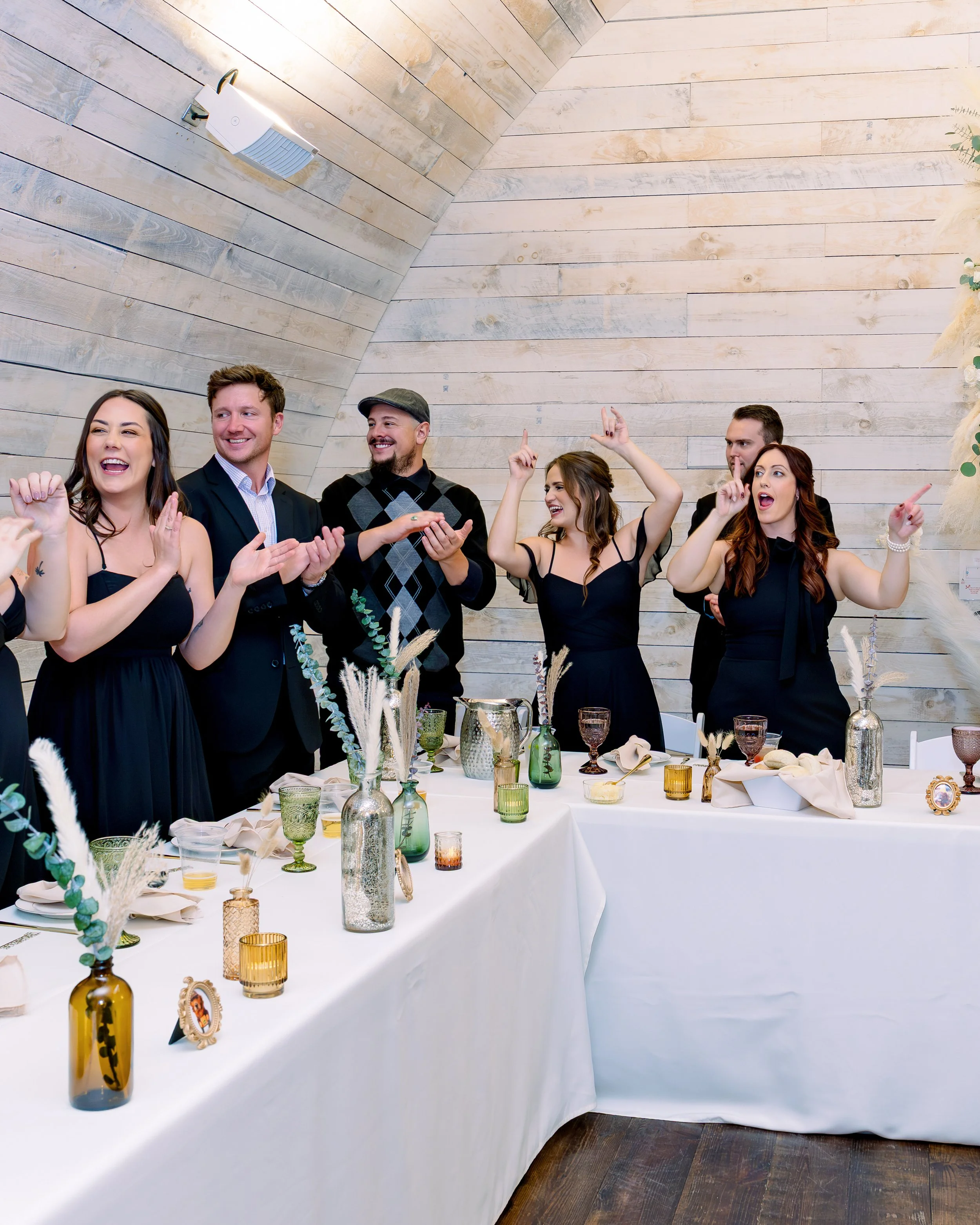 The wedding party wore all black, which looked striking against the warm fall tones—browns, beige, greens, and whites everywhere.