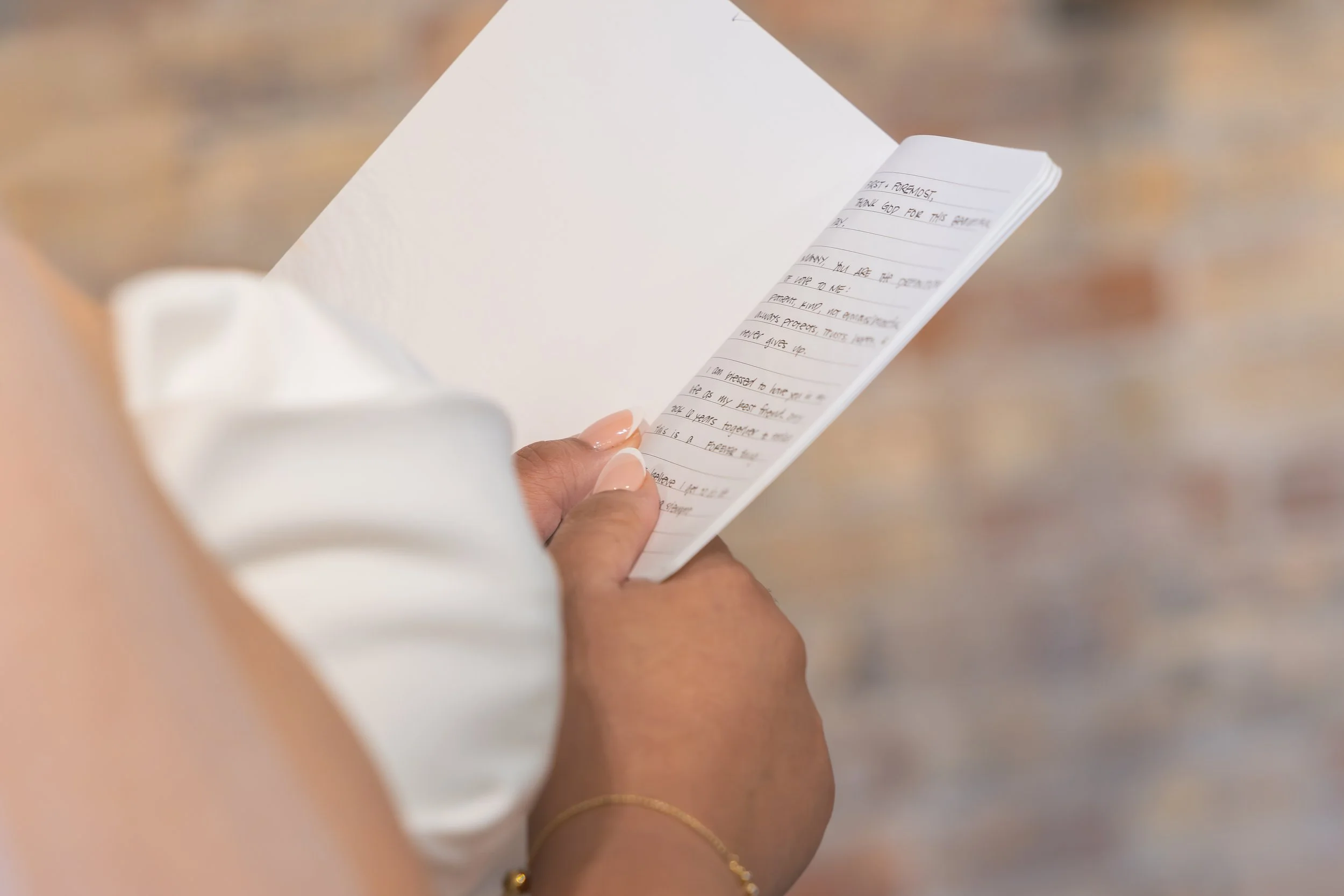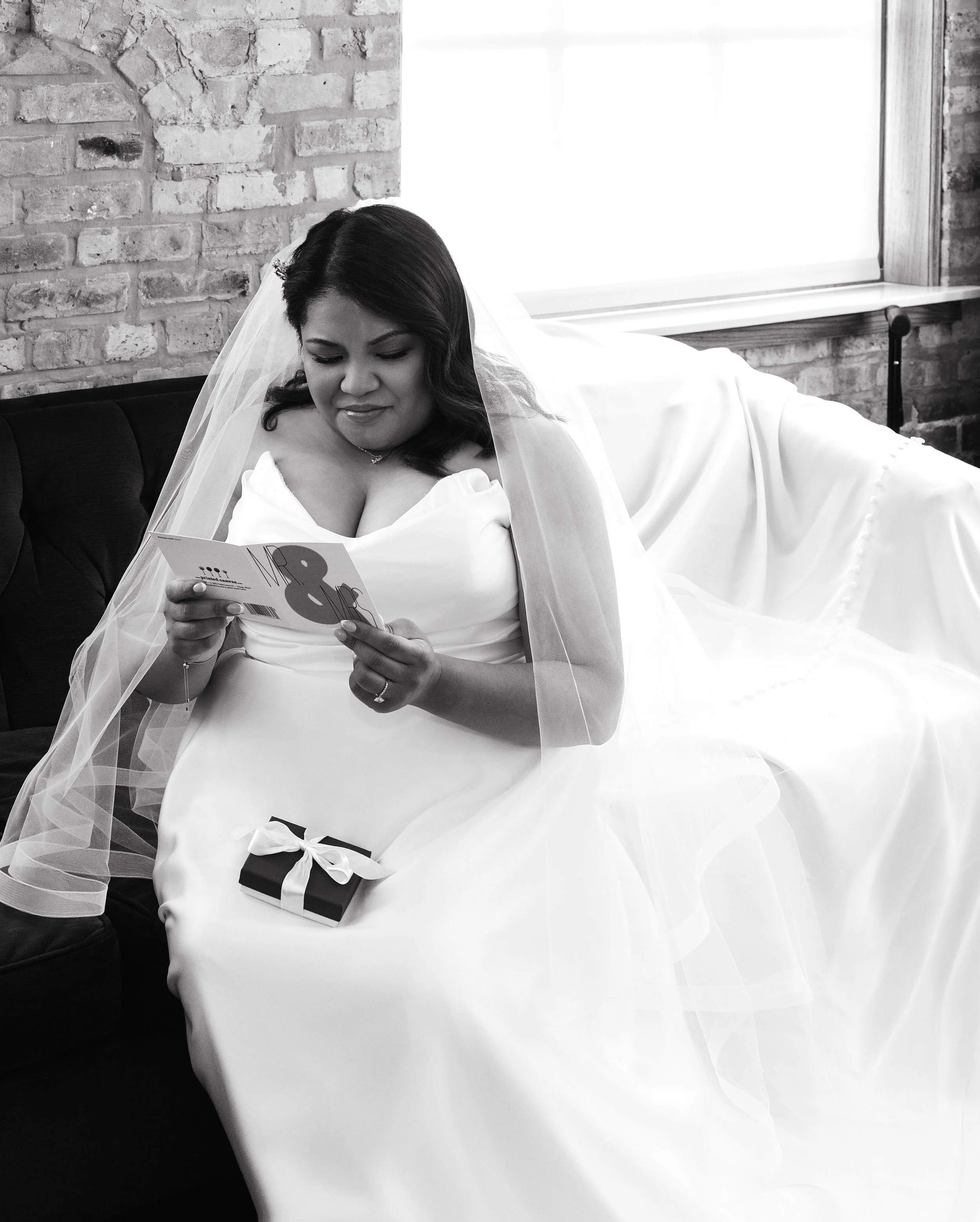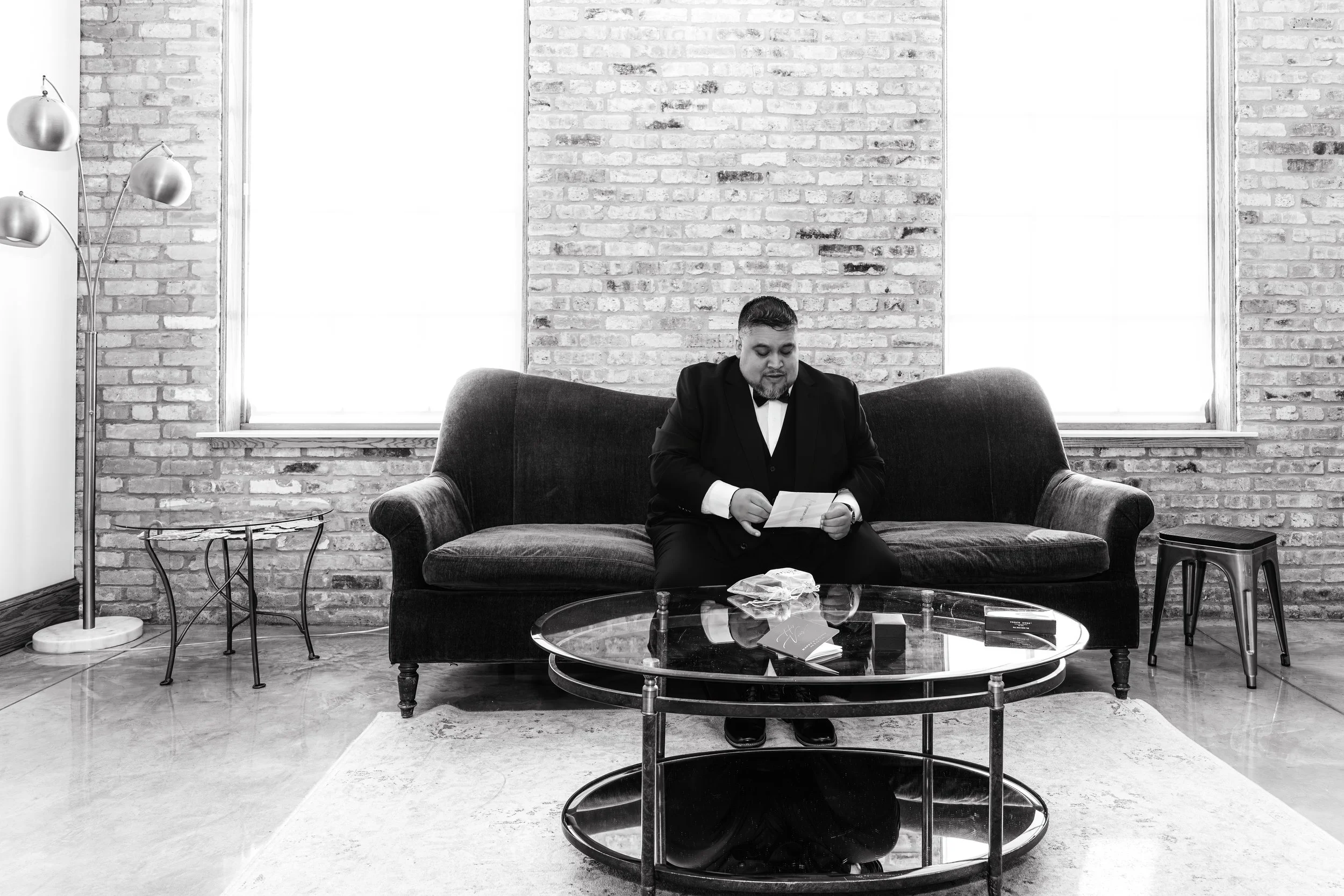 Manny reading a card from Mylene before the ceremony. They waited to see each other until the ceremony.