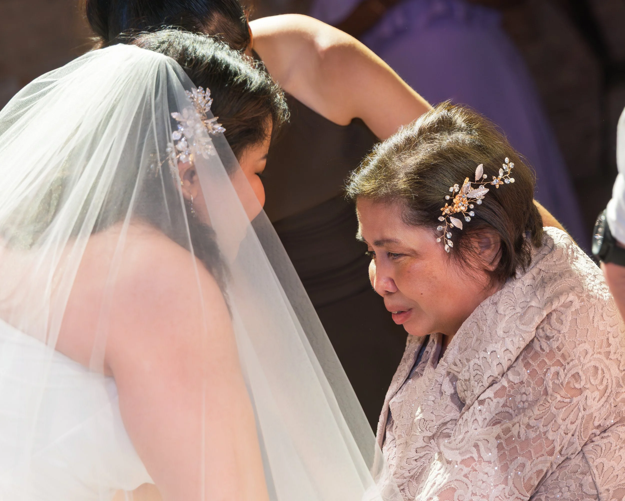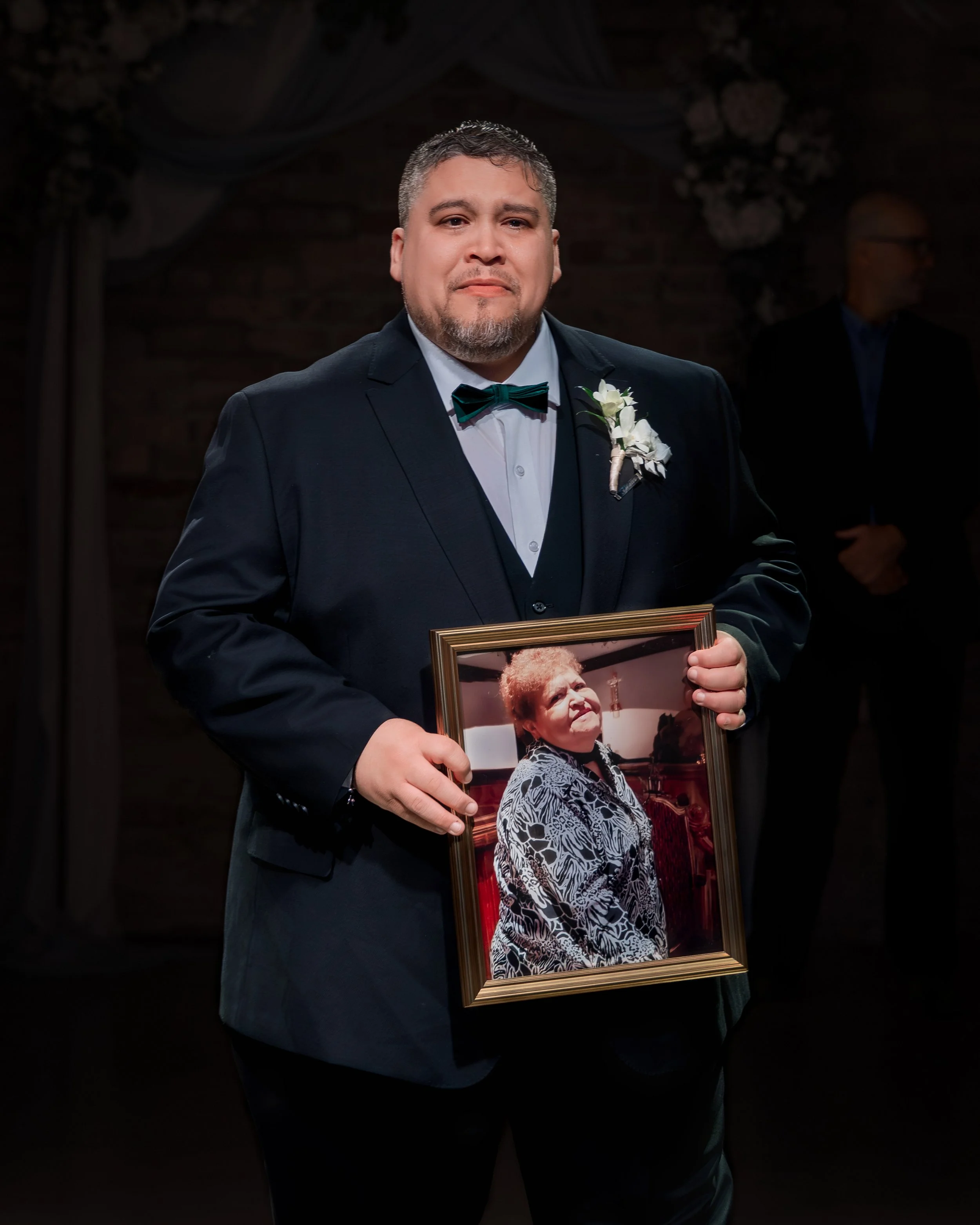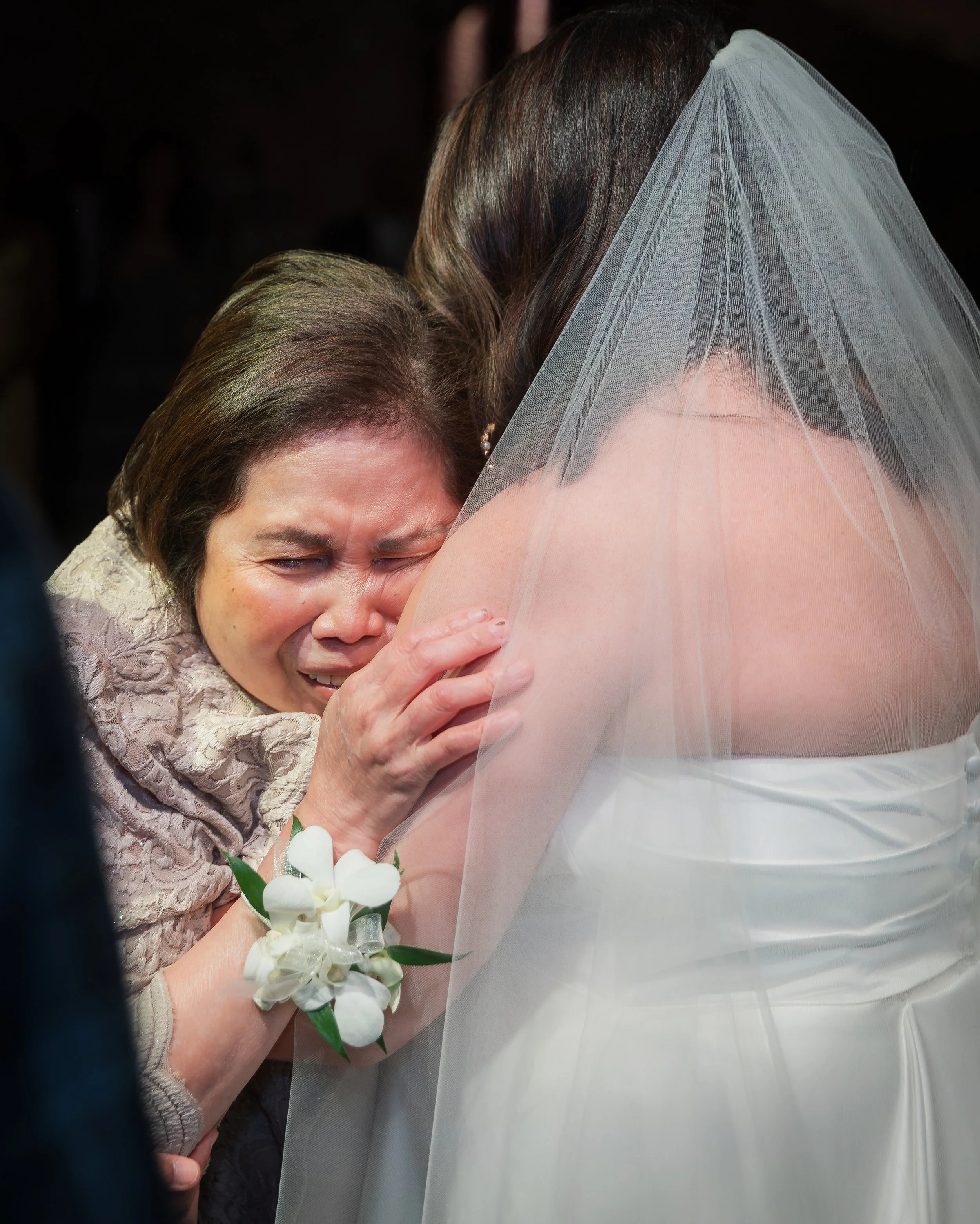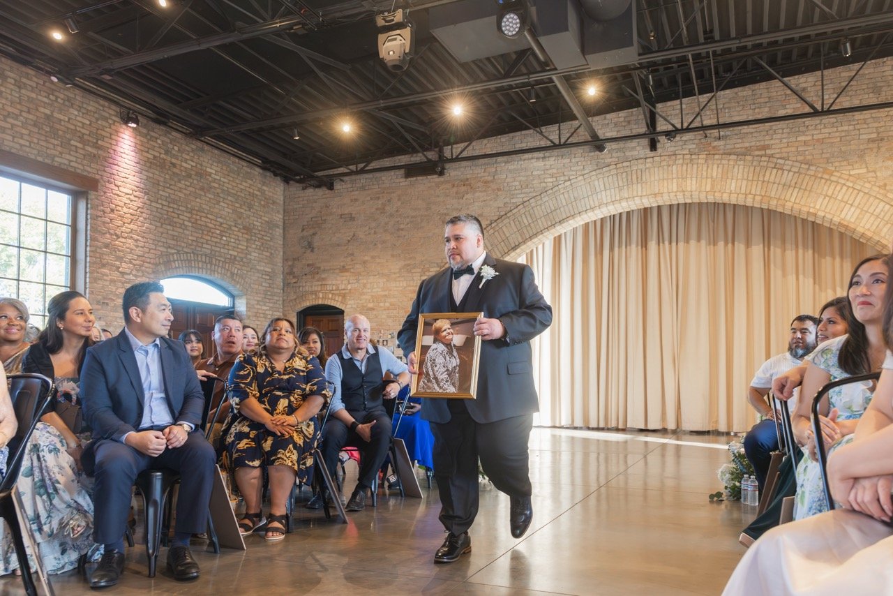 Oh man, the ceremony. So many tears (mine included). Manny walked down the aisle alone, carrying a framed portrait of his mom. Then he waited at the altar for Mylene to walk down with her dad.