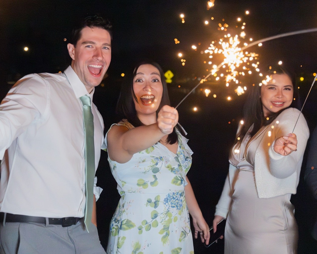 Cocktail hour flowed into dinner, toasts, and dancing. Real reactions, lots of laughter, genuine joy. Later, sparklers outside wrapped up a night full of meaning.