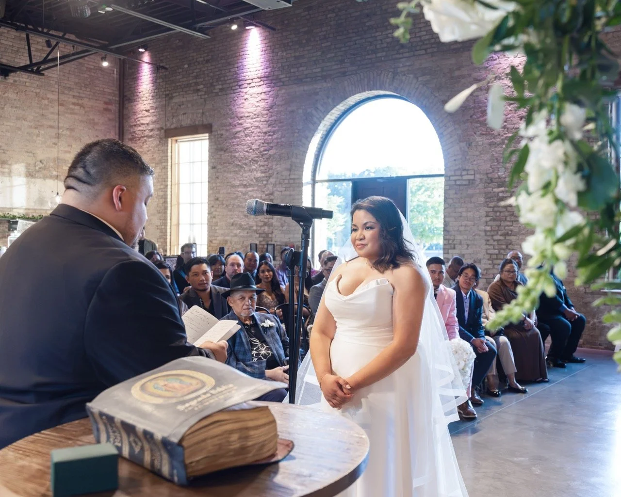 Mylene and Manny got married at The Brix on Fox on a perfect September day. The industrial space was softened with tons of greenery and white florals, and the whole day had this beautiful emotional weight to it.