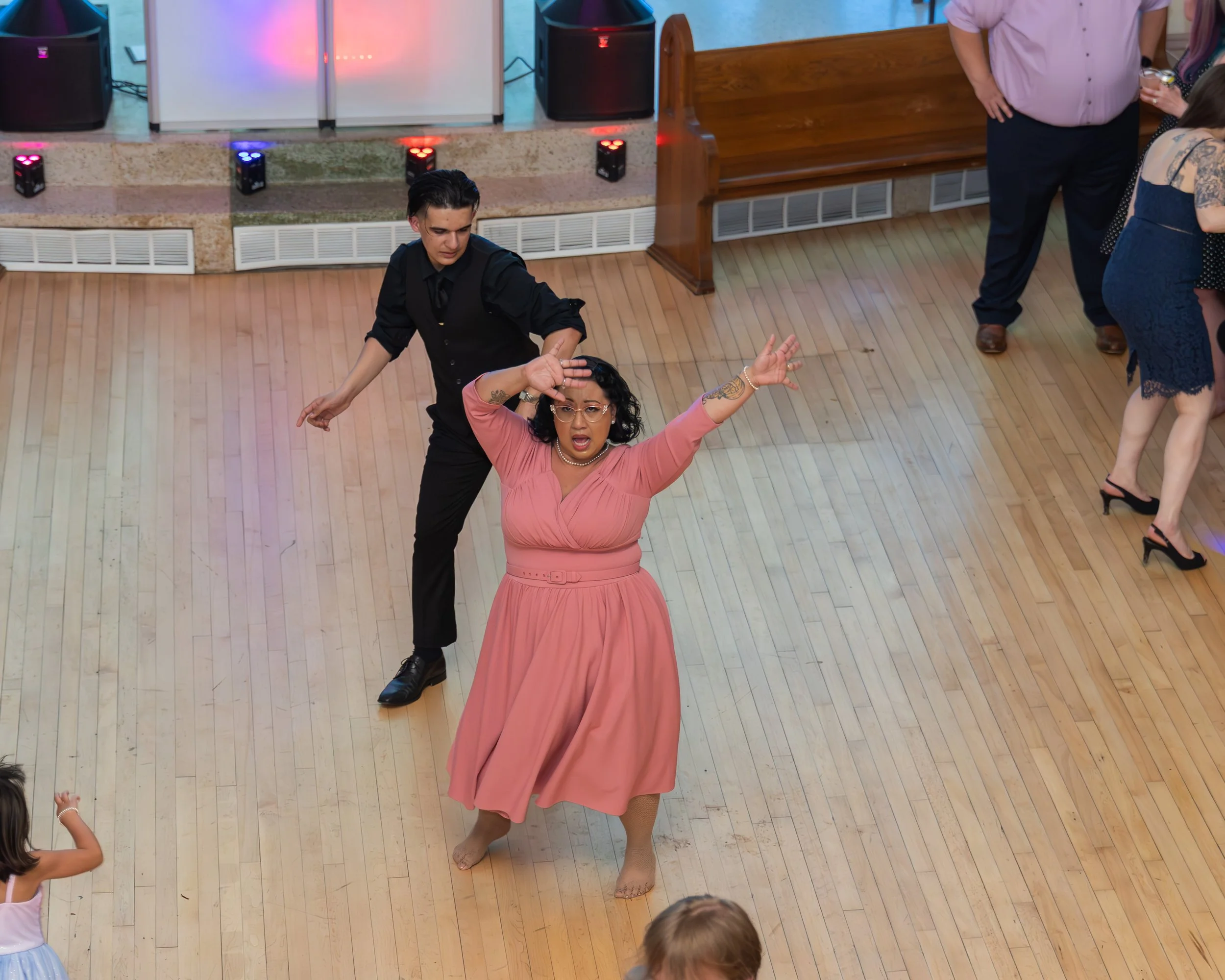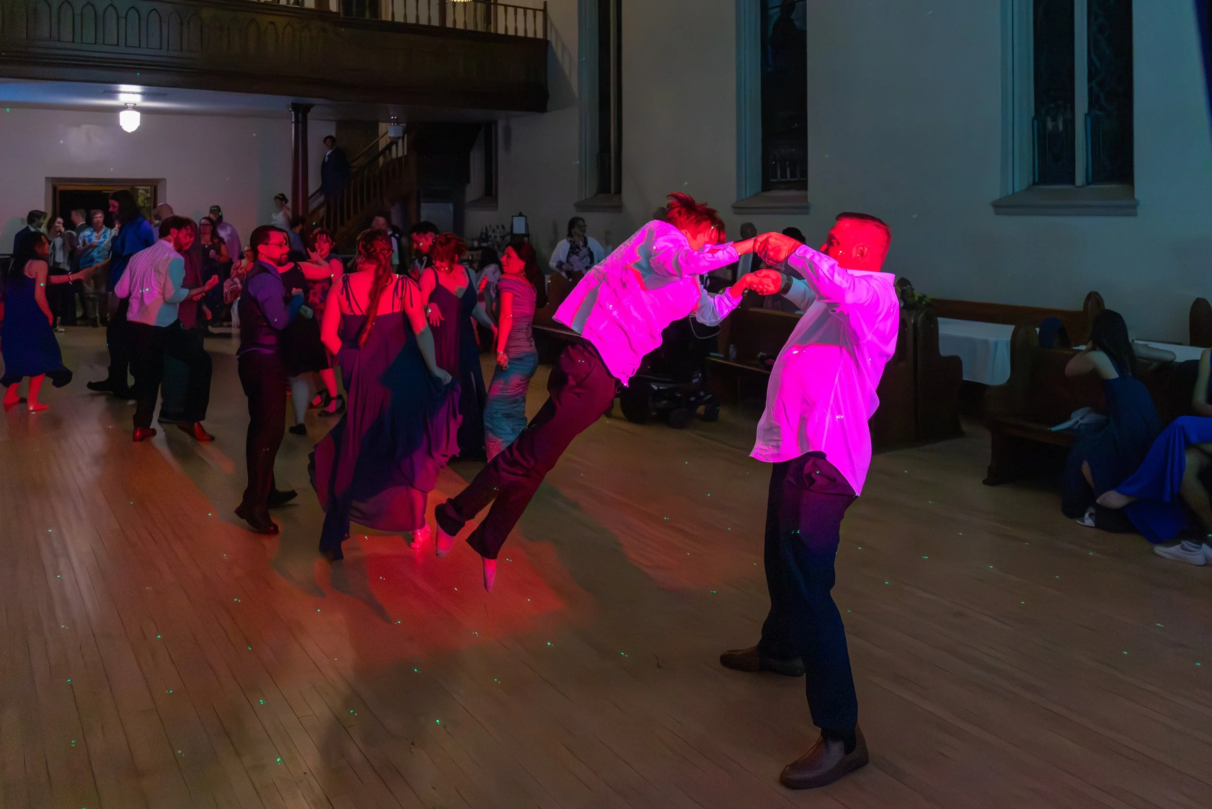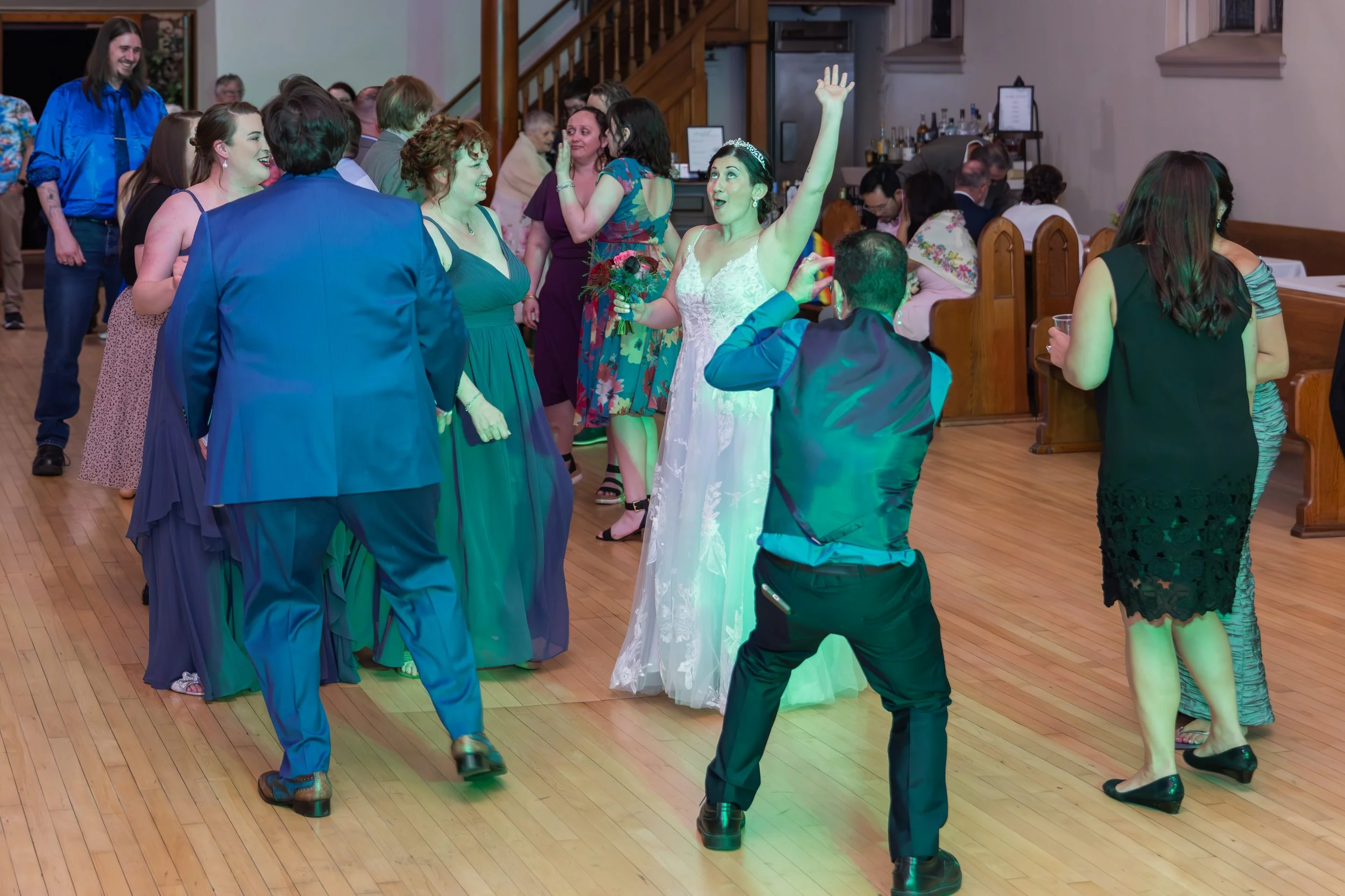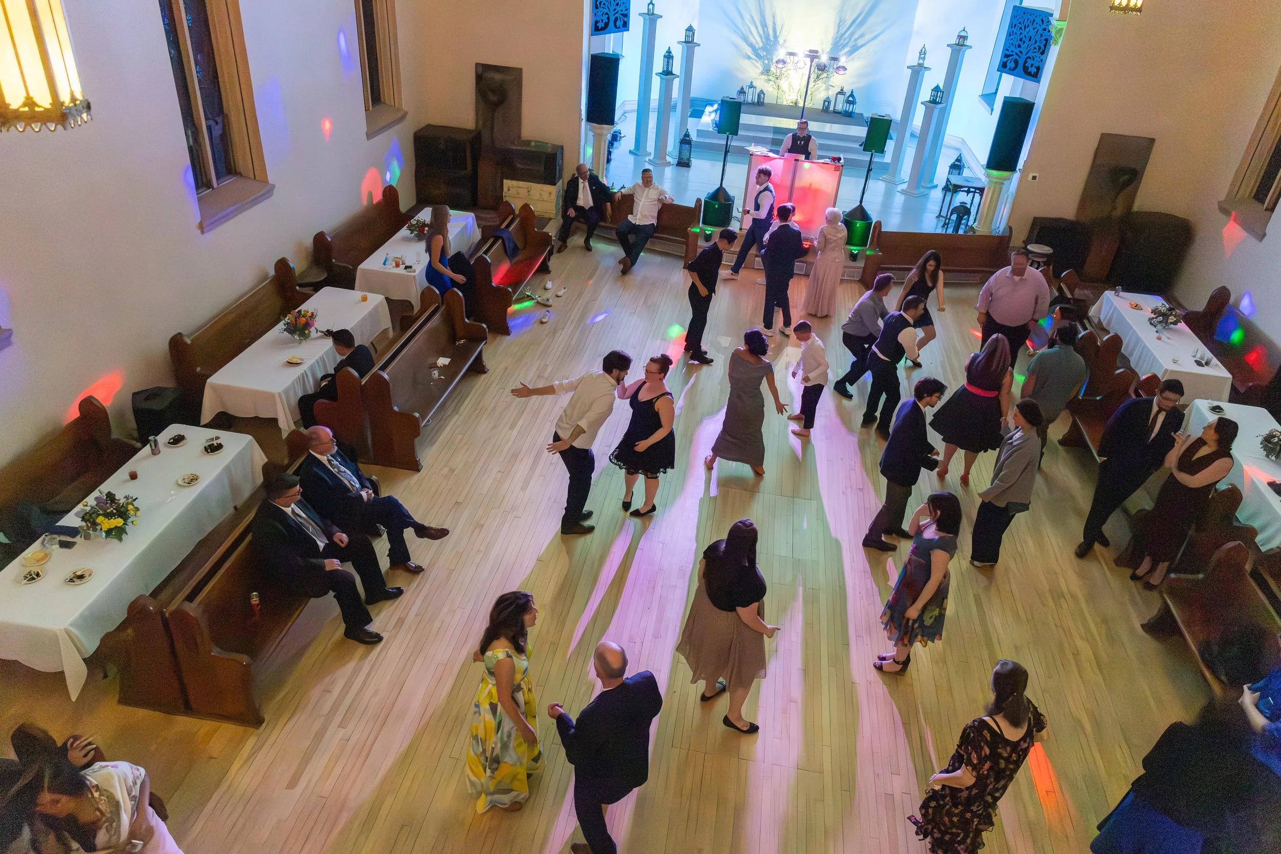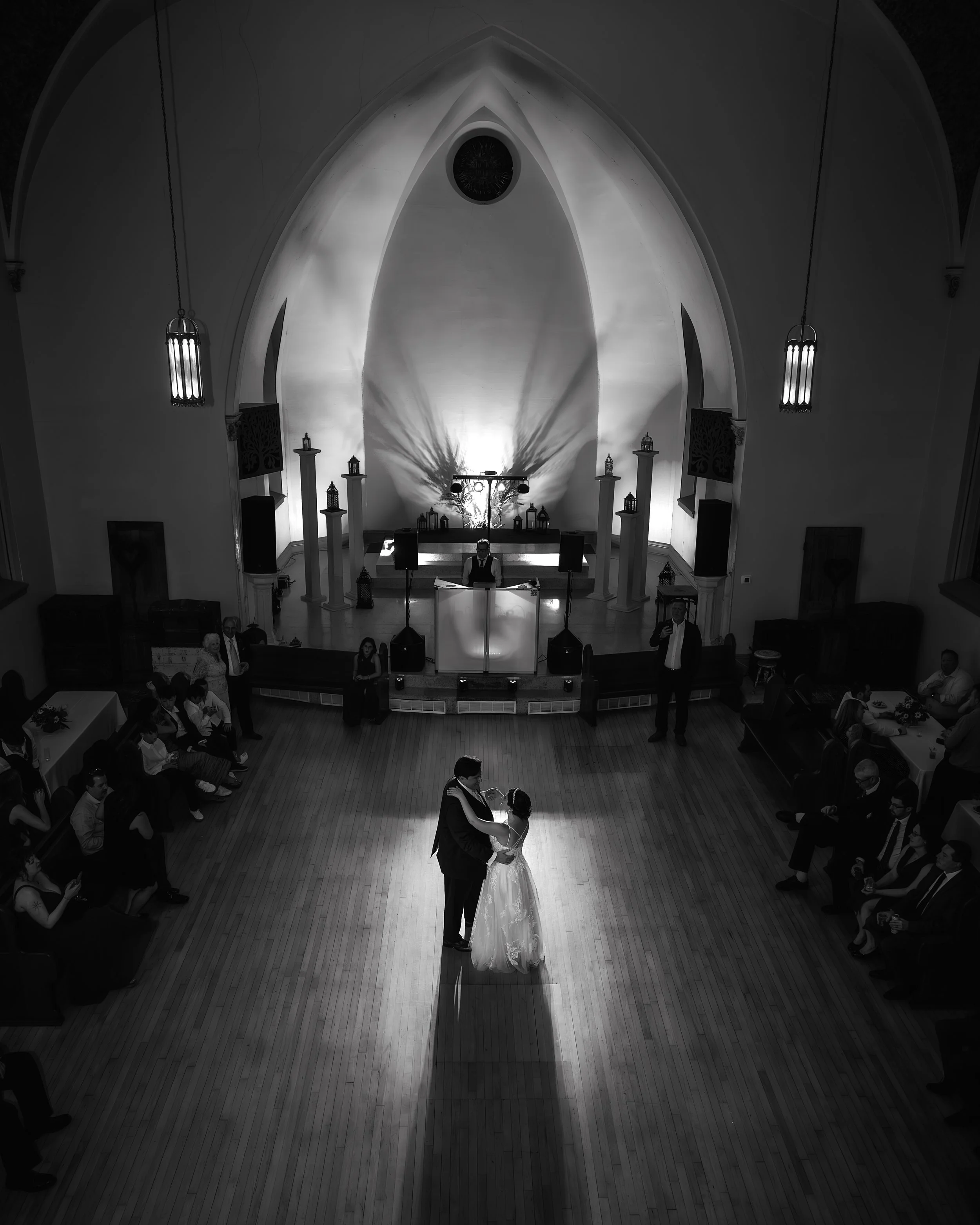 Here's something you don't see every day: instead of starting in the church, guests moved INTO the old church at the END of the night for dancing and cake. Such a fun and unexpected way to close out the evening!
