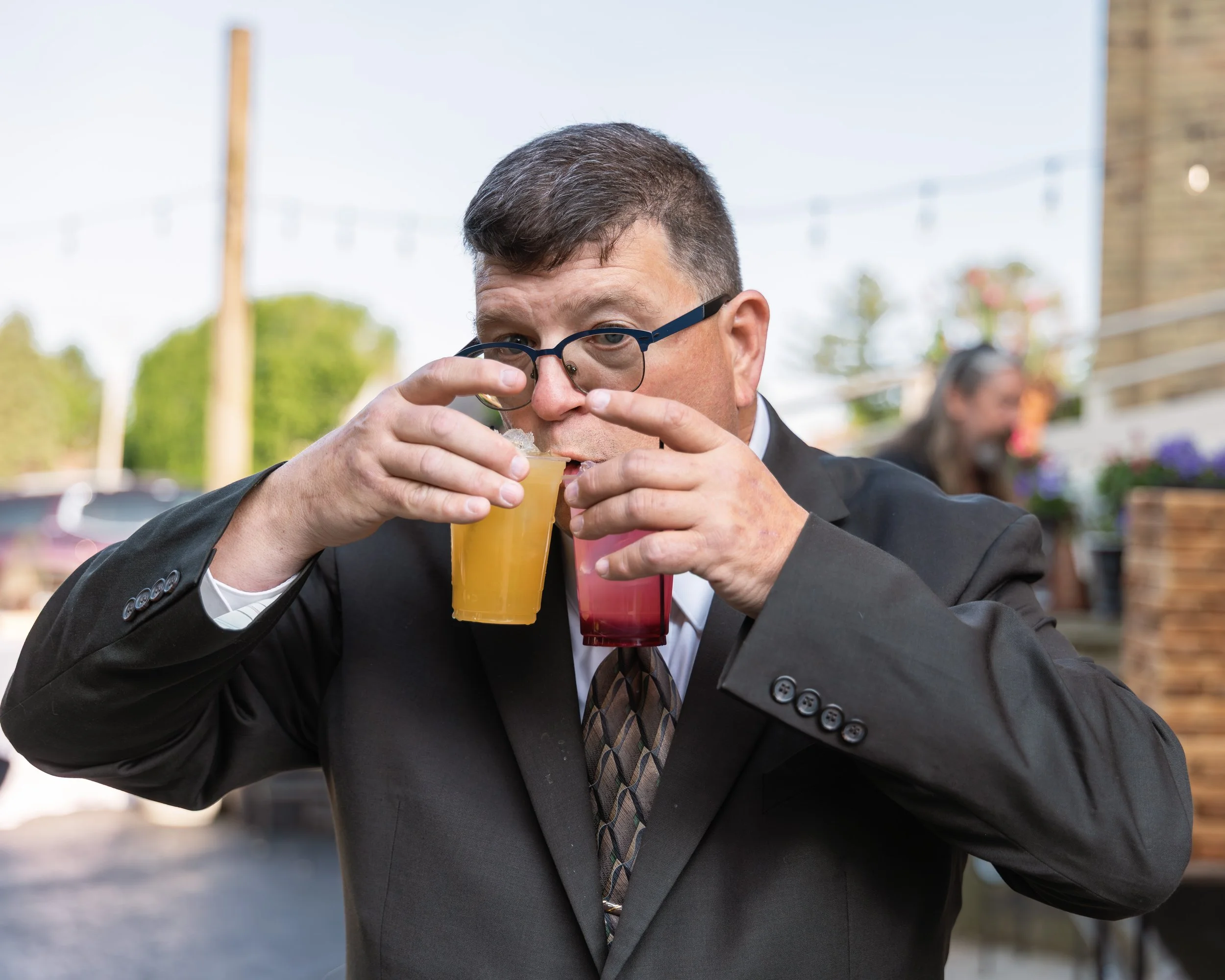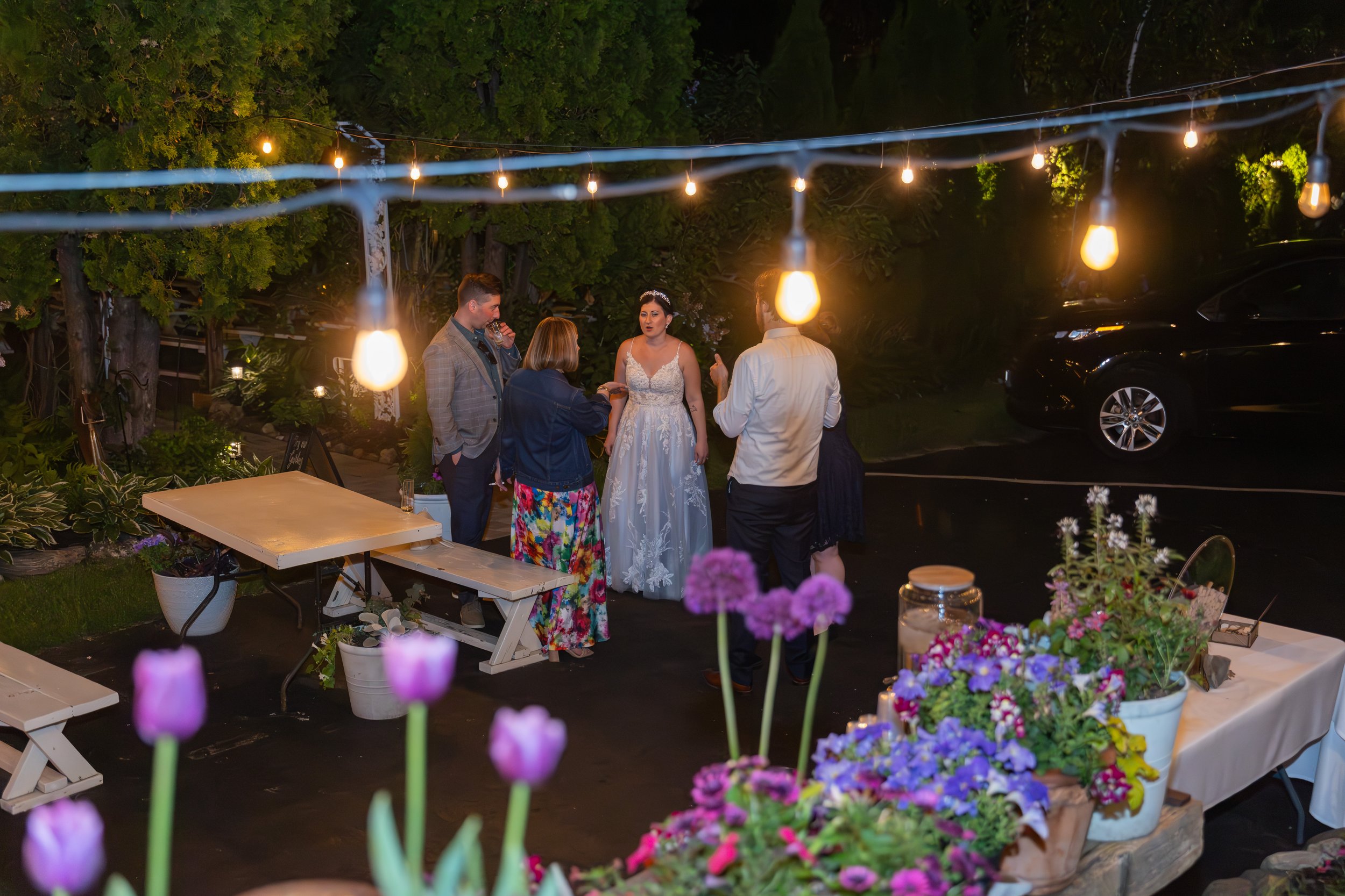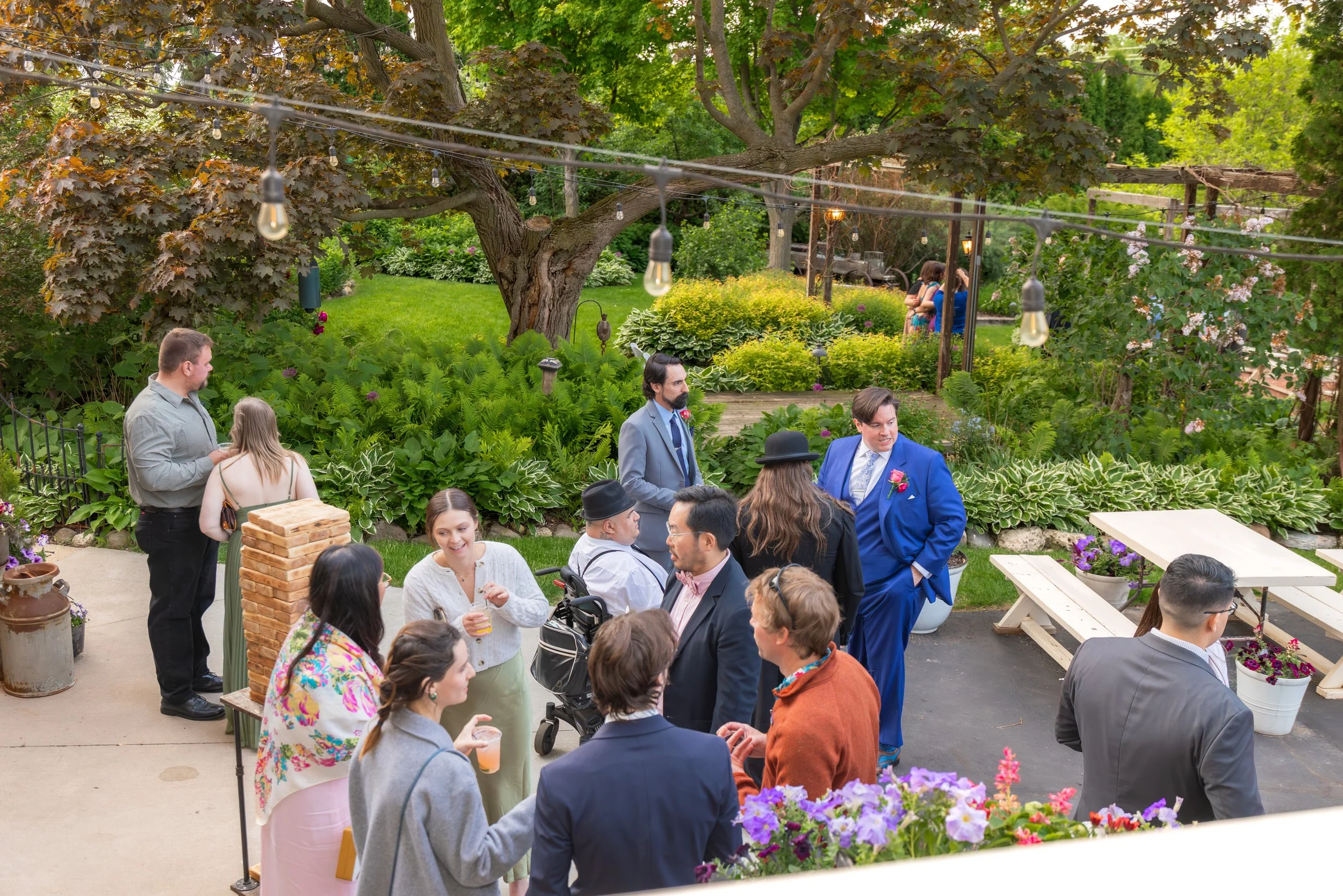 Eric and Teresa tied the knot at The Gardens Wedding Center in Allenton—a venue with fairy lights, outdoor games, a rustic bar, and enough logistical wizardry to make even a Type A bride relax. The details were intentional and warm: a backup DJ, personalized scotch behind the bar, and florals by a close friend.