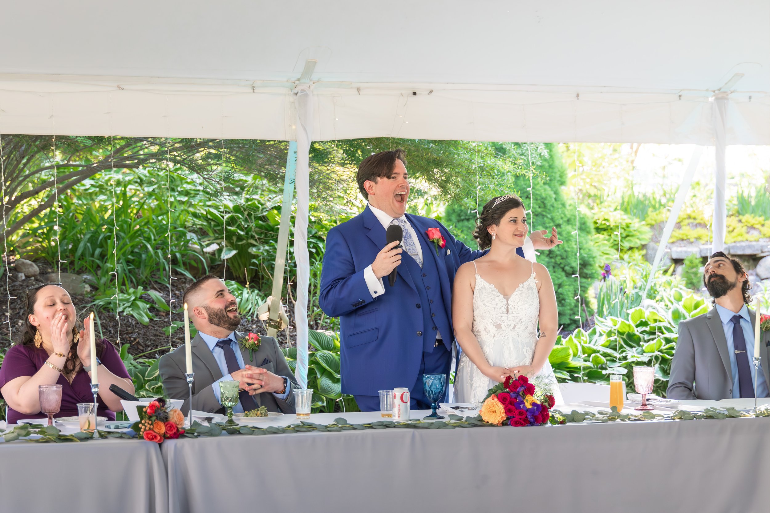 Toasts were genuine and funny—Tess's dad gave a speech packed with very complicated science words that he definitely didn't fully understand, but it had Tess, Eric, and their friends laughing until they were crying.